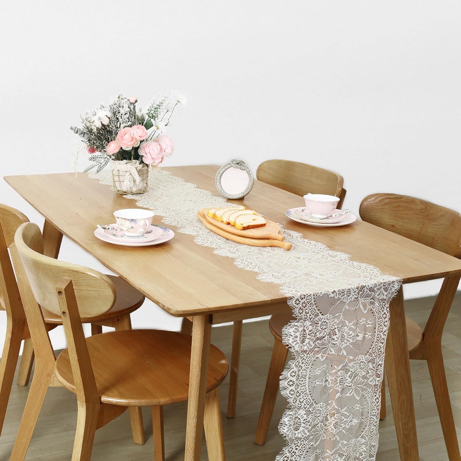 • ๐Ÿ‘ Widely Used: The embroidered white table runner perfect decor for boho wedding, country wedding, romantic candlelight dinner, baby shower, bridal shower and can also be used as a dresser scarf, coffee table runner or everyday use. You can also use it for DIY design, convert the lace table runner into gift bows, chair sashes, wedding tulle and decorations.