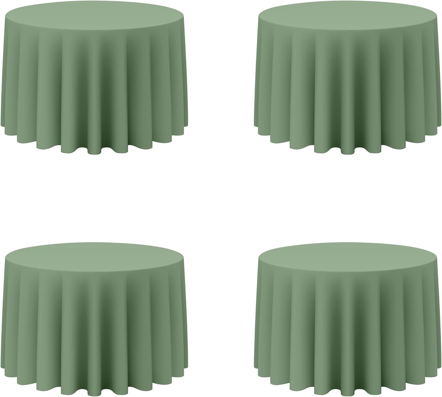 BRILLMAX 4 Pack Sage Green Round Tablecloths 108 Inch - Circle Bulk Linen Polyester Fabric Washable Table Cloth Cover for Wedding Reception Banquet Birthday Party Buffet Restaurant