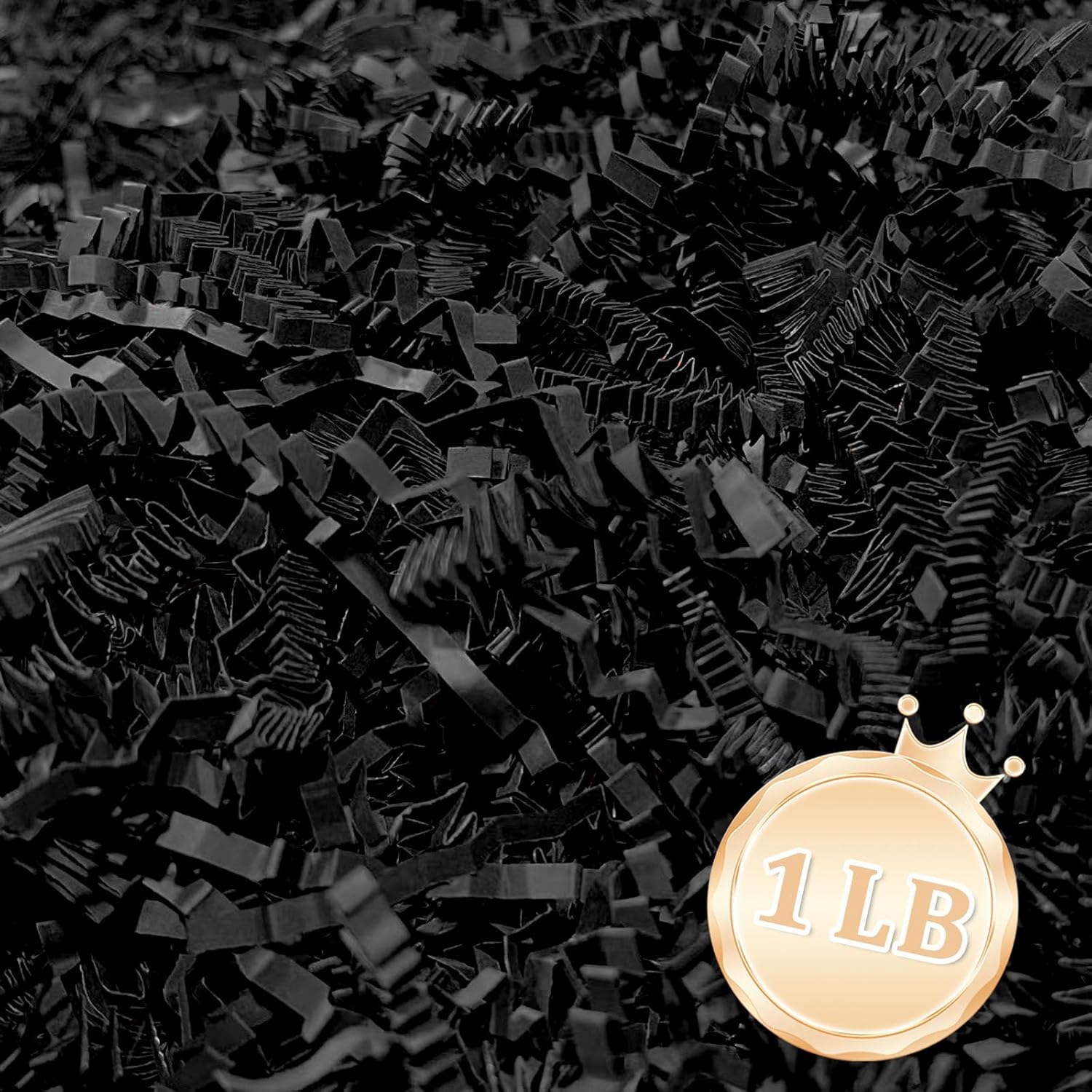 Zankubom 1 LB Black Crinkle Cut Paper Shred Filler Great for Gift Wrapping, Black Basket Fillers, Birthday, Gift Wrapping, Anniversary, Halloween Thanksgiving Christmas Party Decor Filling Supplies