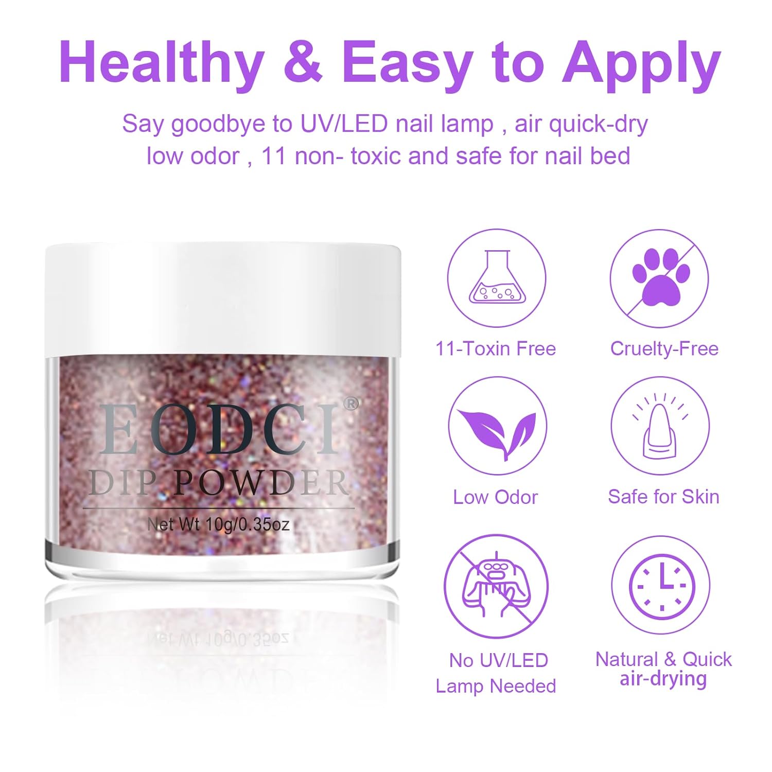 • 【No Lamp Needed】Eodci Nail Dipping Powder does not require UV/LED light to cure, is skin friendly while avoiding skin darkening and damage, safe and easy to use, suitable for beginners and professional nail salons.