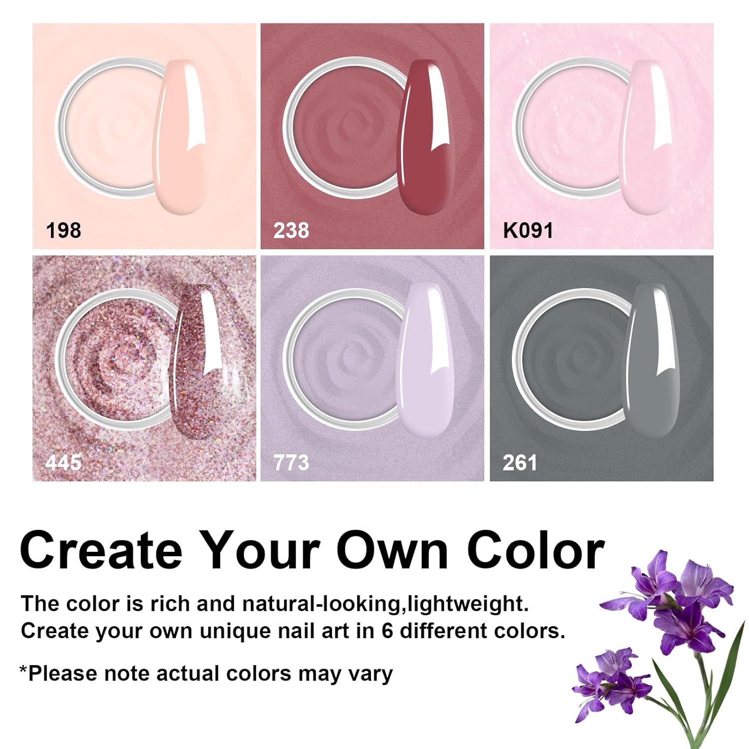 • Included Components : Dip Powder(6*0.35oz), Dip Liquid Set(4*0.5floz), Nail Brush*1, Nail file*1,Substitute brush*2