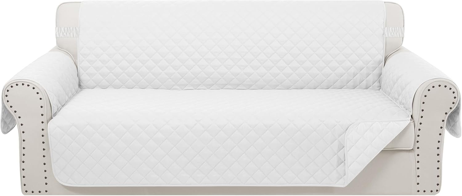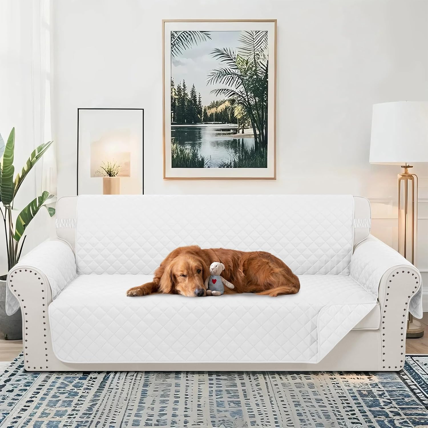 Reversible Sofa Covers Couch Cover Furniture Protector for Dogs Elastic Straps Water Resistant(Sofa,White/White)
