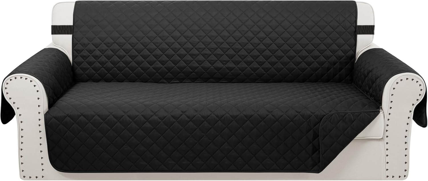 Reversible Oversized Sofa Covers Couch Cover Furniture Protector for Dogs Elastic Straps Water Resistant(XLSofa,Black/Black)
