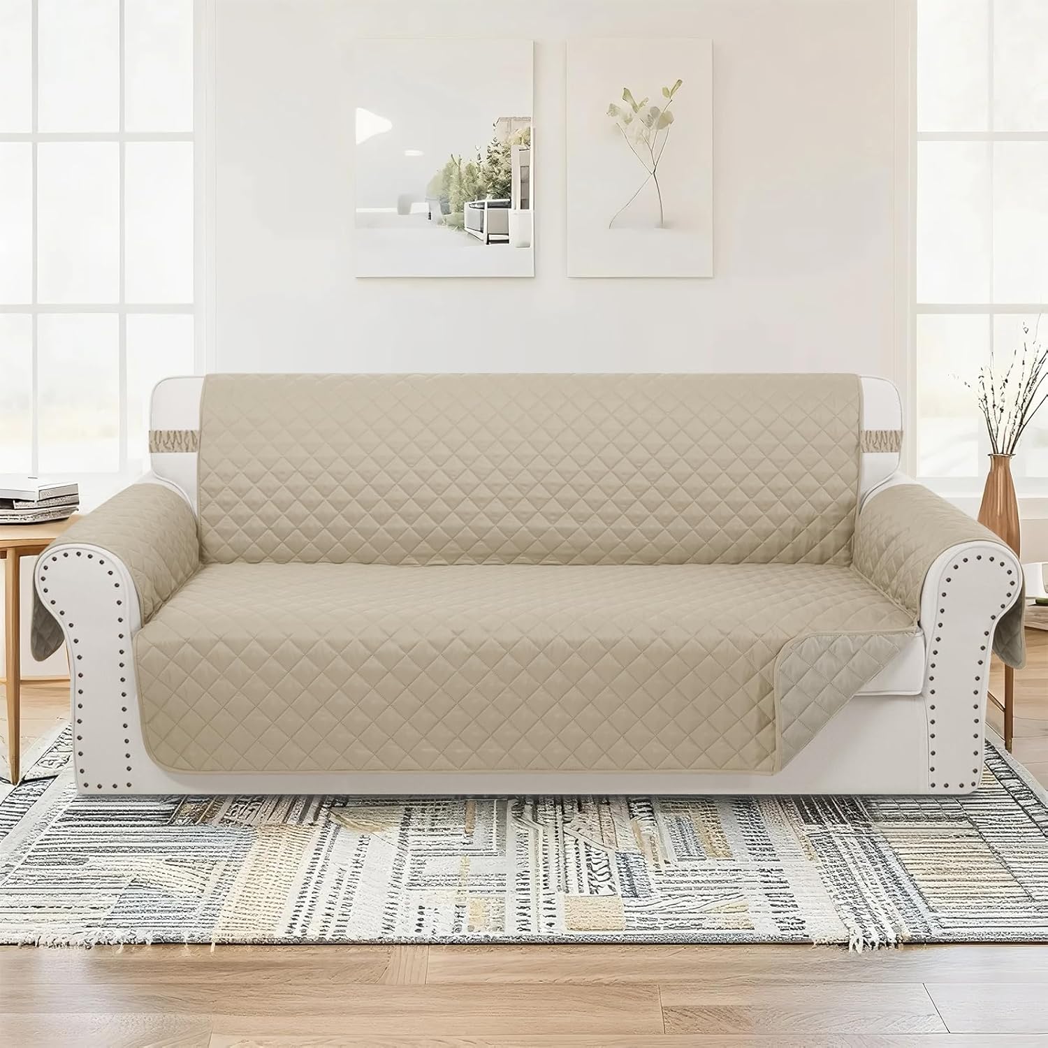 Reversible Sofa Covers Couch Cover Furniture Protector for Dogs Elastic Straps Water Resistant(Sofa,Sand/Beige)