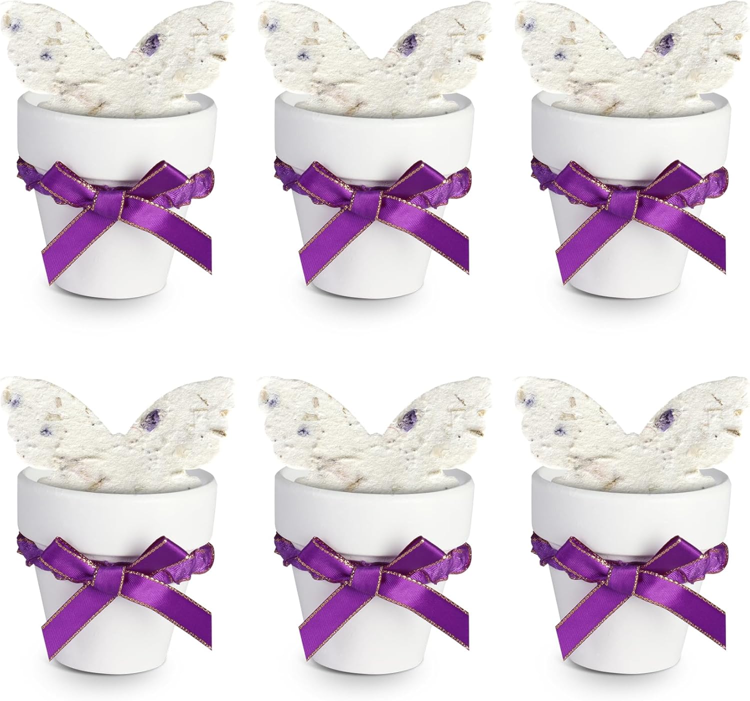 Set of 6 Seed Paper – 6 Purple Butterflies & 6 White Pots with Bow for Baby Shower, Gender Reveal, Birthday, & Other Milestone Celebrations