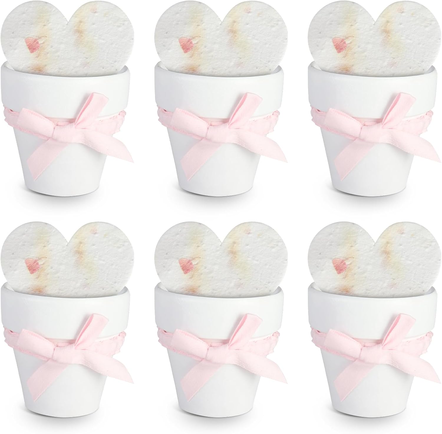 Set of 6 Seed Paper – 6 Pink Hearts & 6 White Pots with Bow for Baby Shower, Gender Reveal, Birthday, & Other Milestone Celebrations