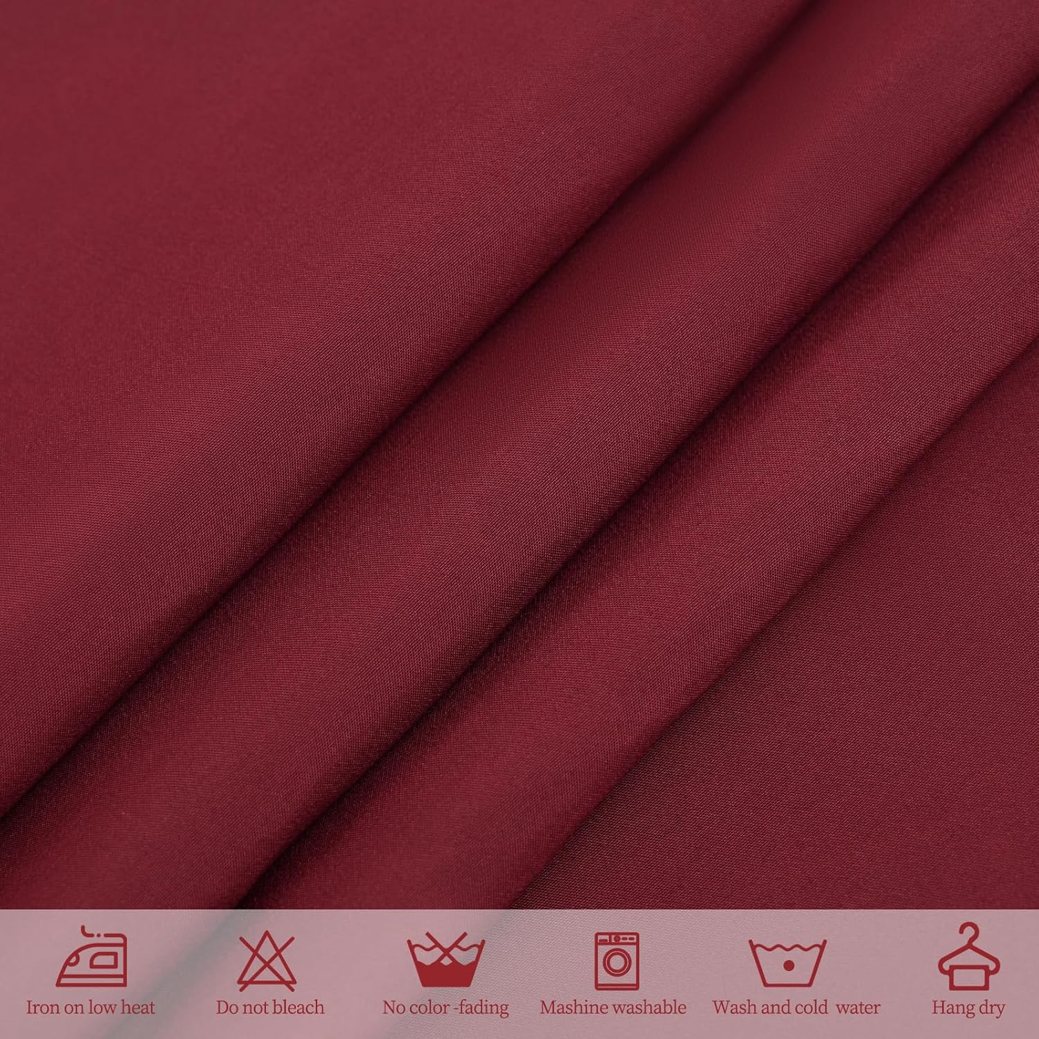 • 【Perfect size】: This burgundy table cloth is 60 inch wide and 126 inch long, cut entirely from a single piece of fabric, perfect for standard 8ft table, providing 15 inch drop. Burgundy tablecover is more luxurious, classic and gracious, ideal for both formal & casual settings and makes a great gift for all occasions.Upgrade your special moment and daily life with an exquisite taste.
