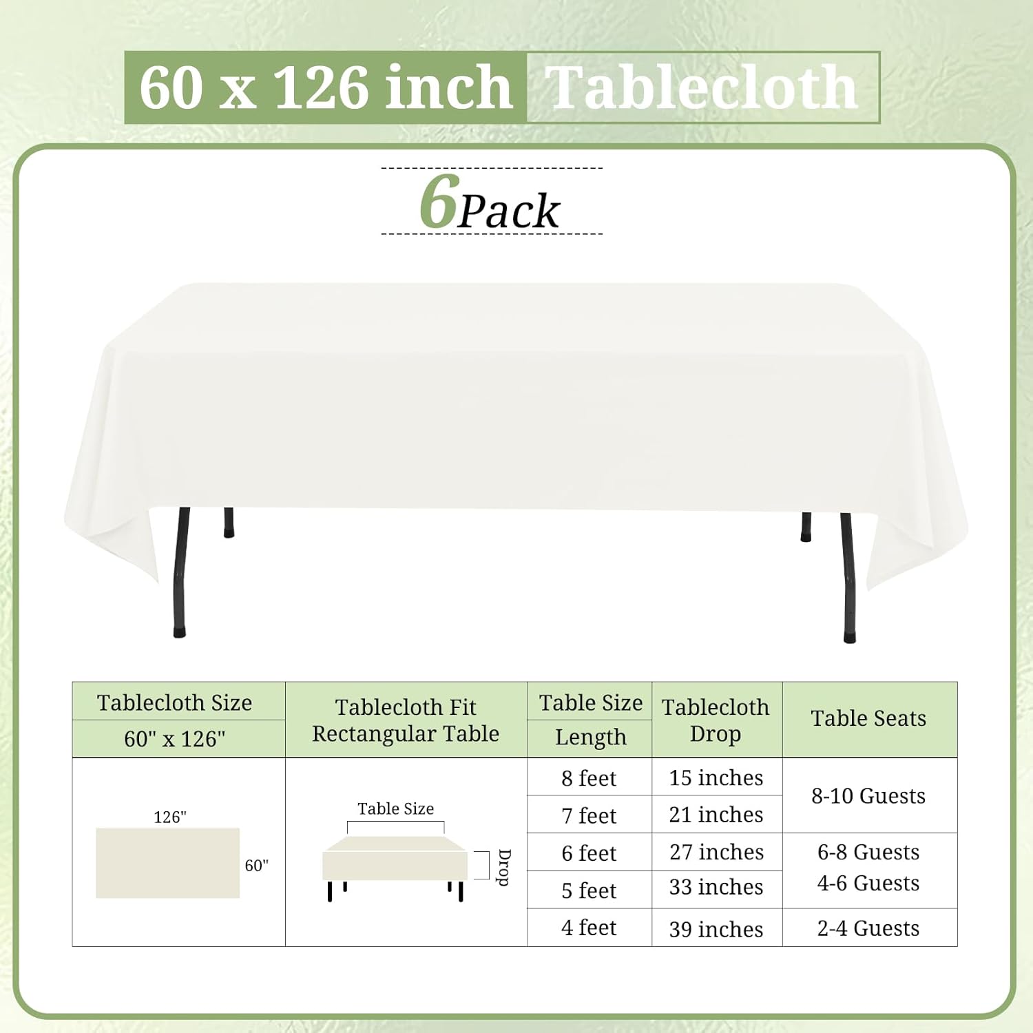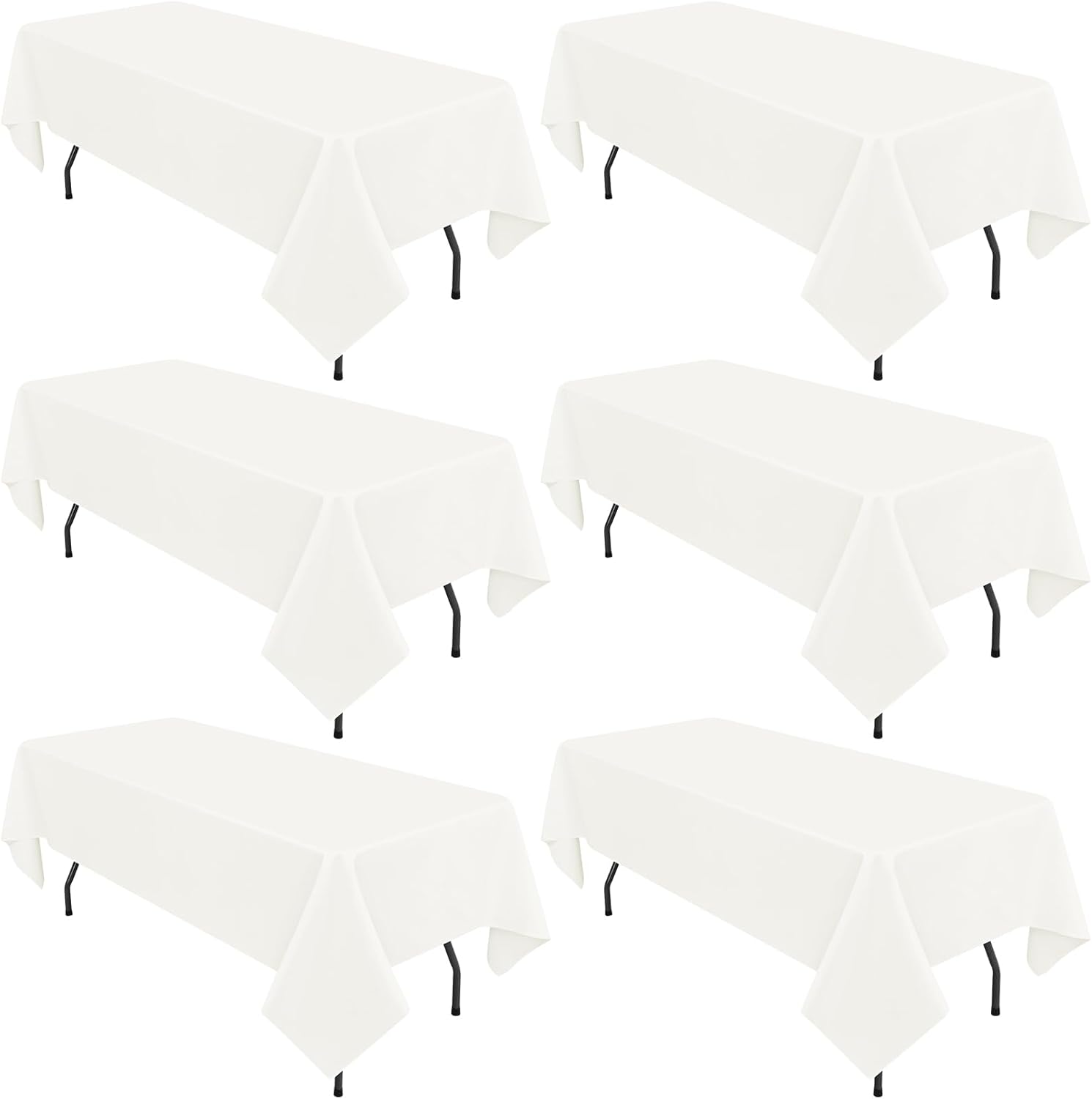 6 Pack Ivory Tablecloths for 8ft Rectangle Tables 60 x 126 Inch - Polyester Table Cover Stain and Wrinkle Resistant Washable Fabric Table Clothes for Wedding Party Banquet Reception Restaurant