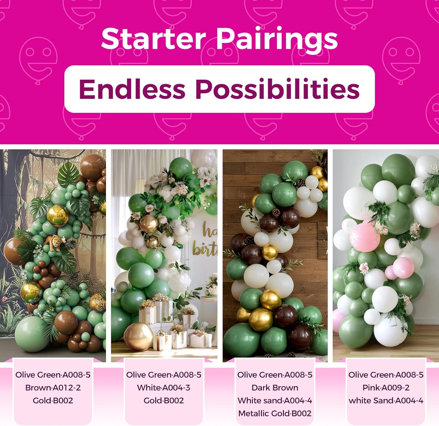 • 【Premium Quality】- Large olive green balloons are made from premium Eco-friendly latex material which is durable and long-lasting quality with no smell, safe to use around children.