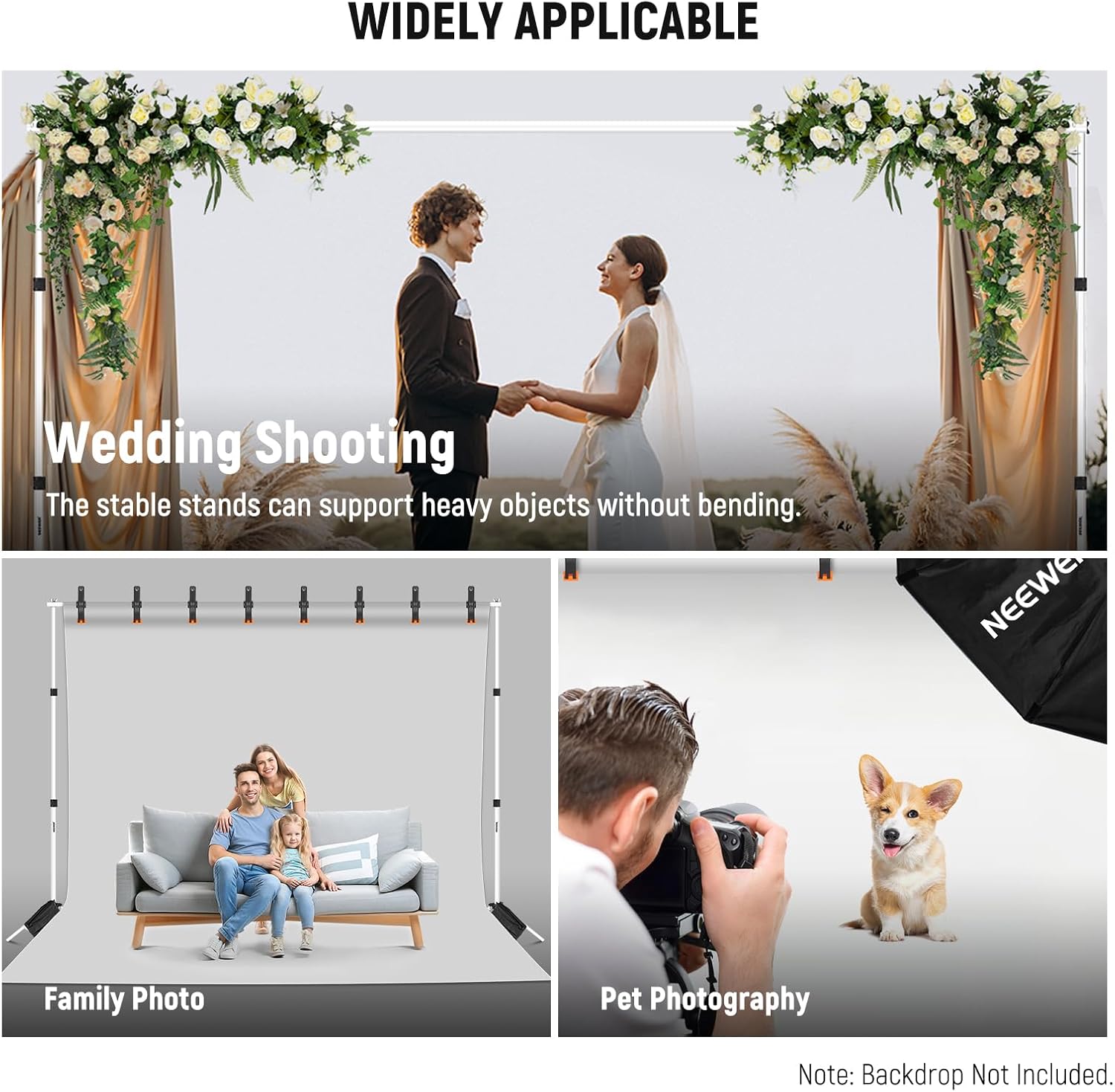 • Backdrop Support System: Comes with 2 backdrop stands, 4 crossbars, and other accessories to ensure stable support for your backdrop (Backdrops Not Included). Ideal for photo studios, parties, weddings, and other events