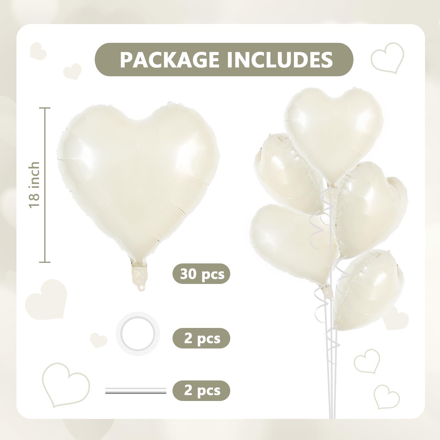 TONIFUL 30Pcs 18 Inch Cream White Heart Balloons Cream White Heart Shape Foil Mylar Balloons Decoration for Birthday Valentine's Day Wedding Bridal Shower Anniversary Engagement Party Supplies