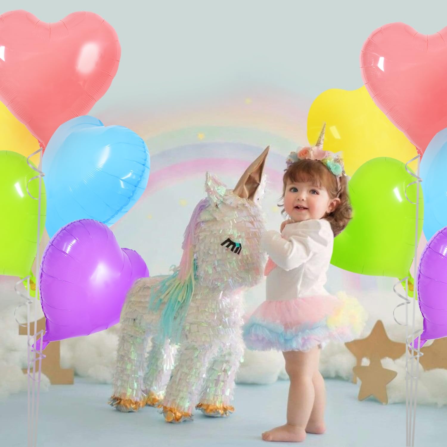 TONIFUL 30Pcs 18 Inch Pastel Colorful Heart Balloons Rainbow Heart Shape Foil Mylar Balloons Decoration for Birthday Valentine's Day Wedding Bridal Shower Anniversary Engagement Party Supplies