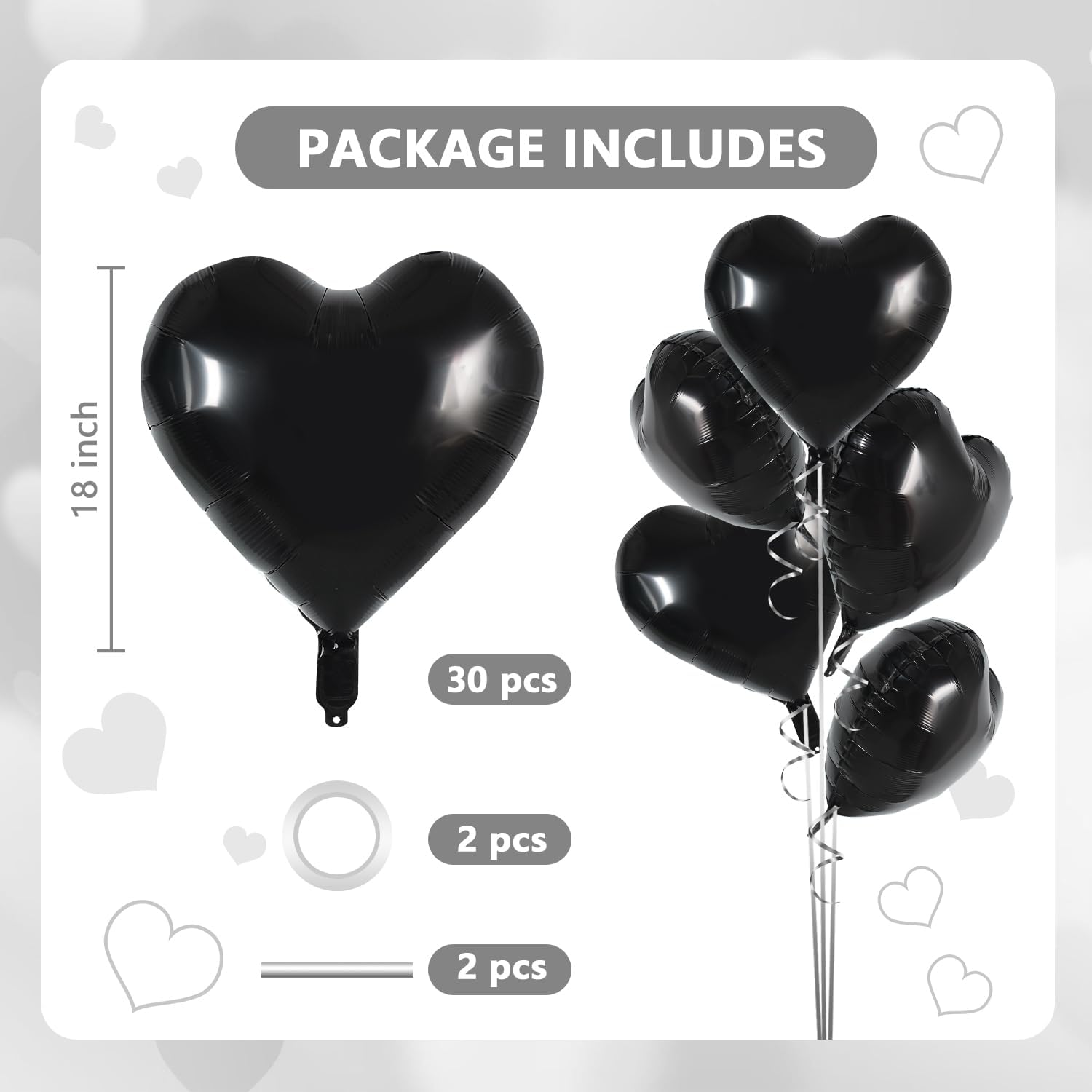 • PACKAGE CONTENT: You will get 30pcs 18inch heart shape foil balloons,2pcs straw and 2pcs ribbon in a wide range of quantities to suit your decorating needs.