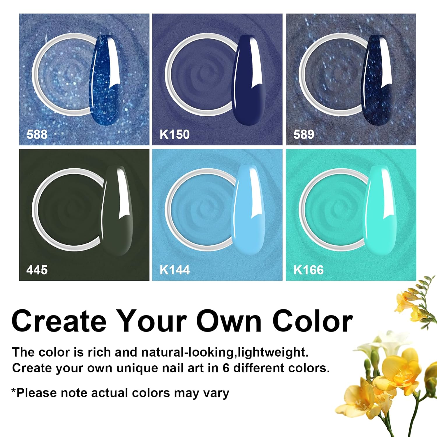 12 Pcs Glitter Blue Dip Powder Nail Kit Starter, Dark Green Blue Snow Dipping Powder Kit With Base & Top Coat/Activator/Brush Saver, Odor-Free&Long-Lasting, No Needed Nail Lamp Curing