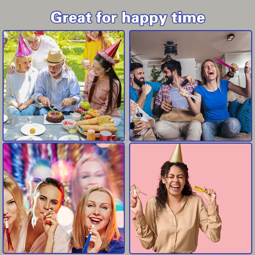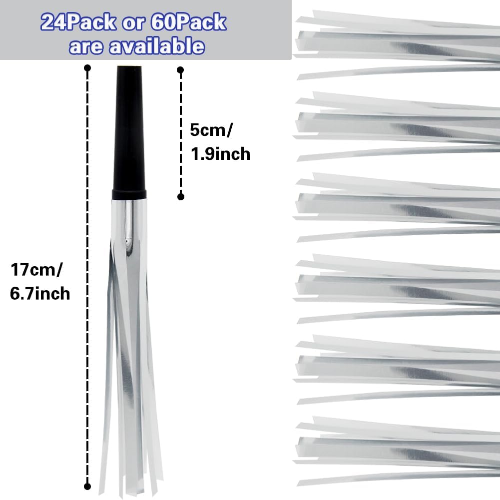• PACKAGE DETAILS: You will receive 24 pieces silver glitter metallic fringed noisemakers; 6pcs blowsout horns are packed in a package, total of 4 package; Sufficient quantity for replacement