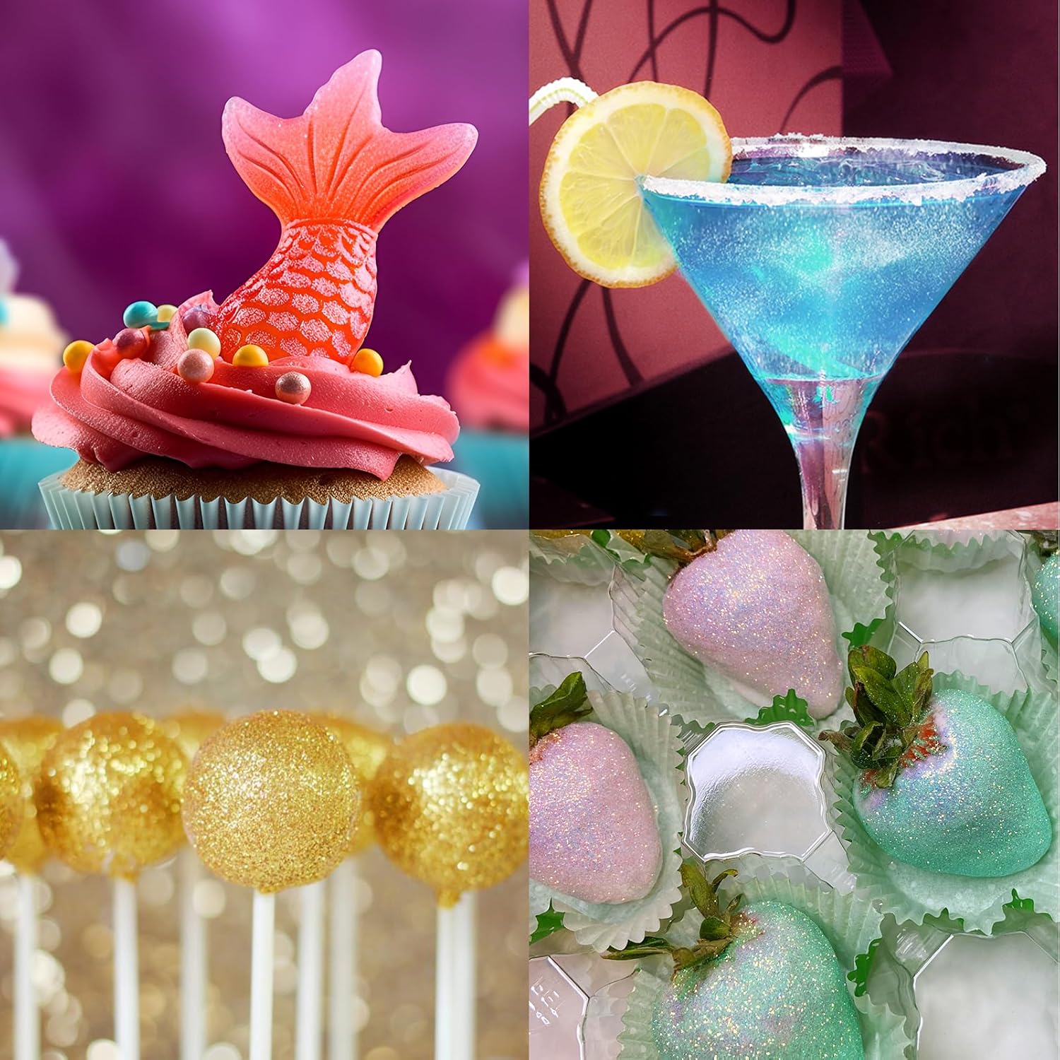 • Widely Use: This edible glitter can be used for a various beverages and wines, cocktails,champagne, gourmet cakes, cupcakes, cookies, mcaroon, dipped strawberries, chocolates, cake pops, Ice-cream, etc...other baked goods by giving them amazing color and sparkle.