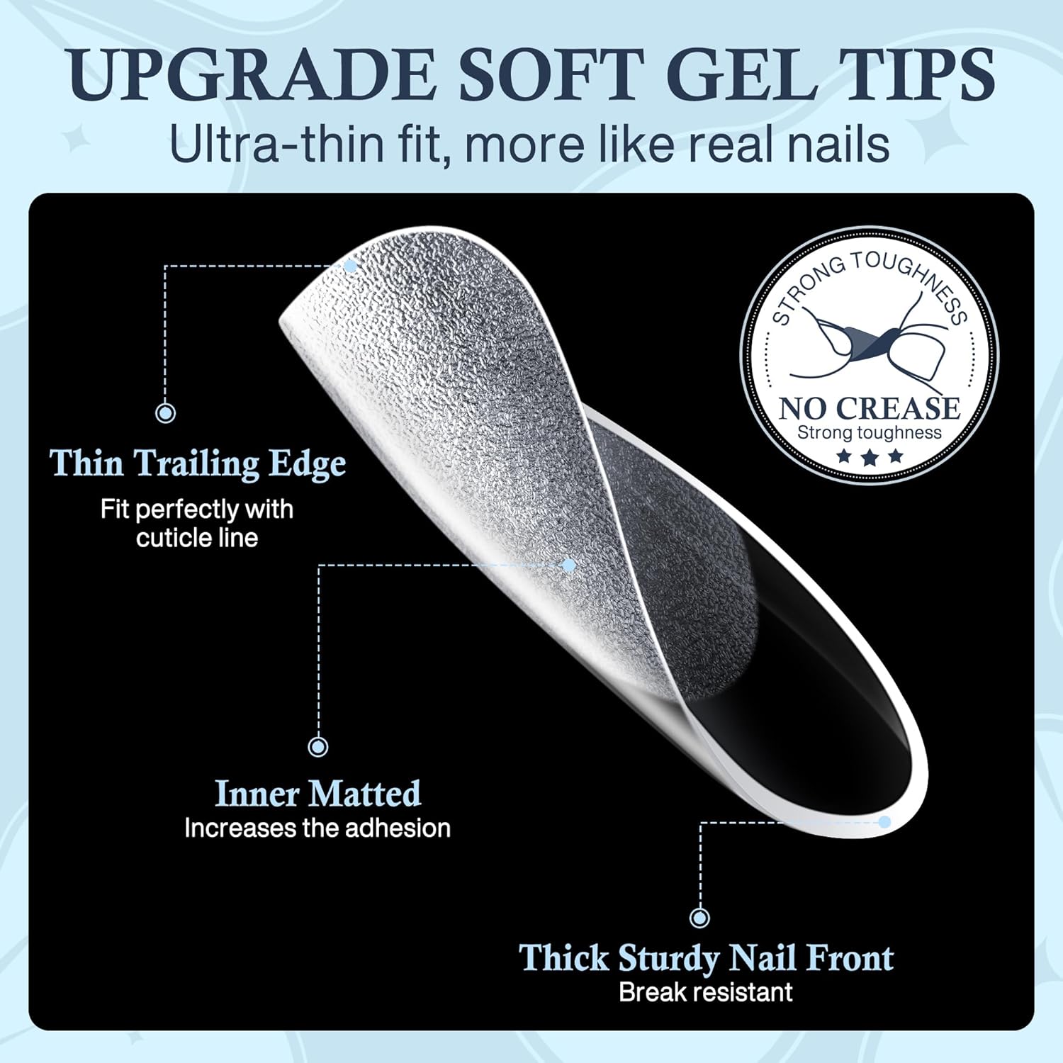 • Foldable Soft Gel Tips: Crafted from gelly soft gel material, these fake nails leave no trace even when bent. Their bright clarity allows for easy pressing, trimming, and painting, helping you create your ideal nail shape effortlessly. Perfect for a true DIY manicure.