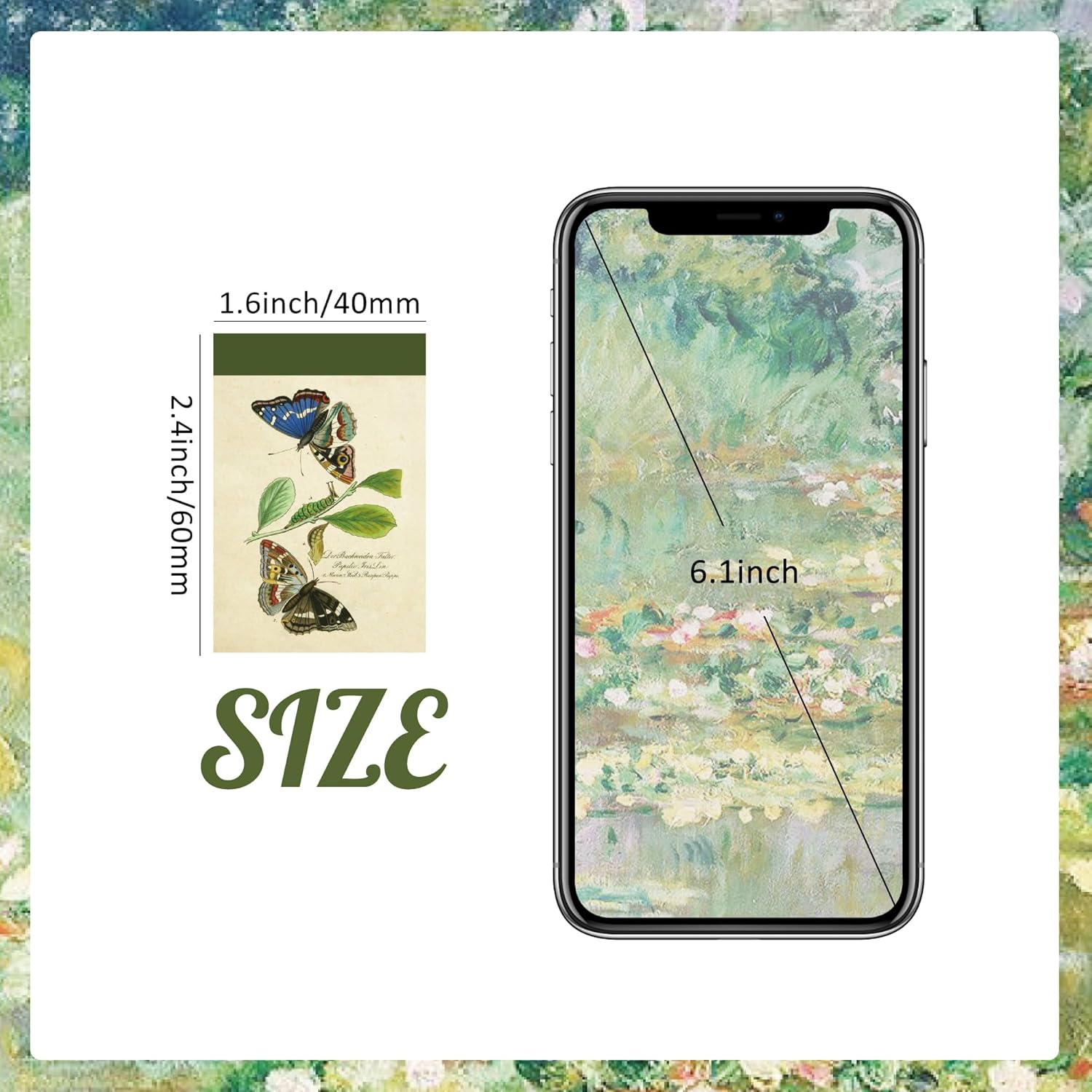 • 300 Pcs scrapbooking supplies pack. This sticker set of 6 packs, each pack of 50 pieces. Size information: these artistic stickers measure approx. 1.57 x 2.36 inches.
