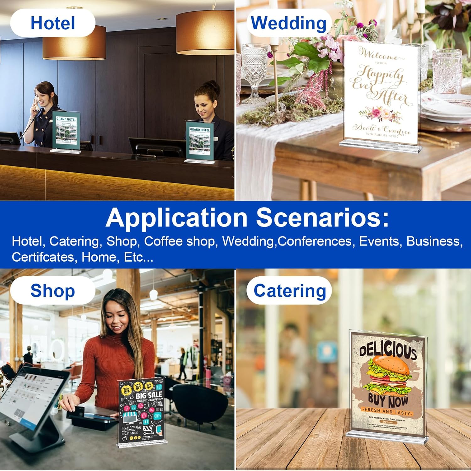 • 【Double-Sided Display Stand】: Double sided display frame allows you to display your content from both sides, ensuring maximum visibility and exposure, it is suitable for menus, flyers and table signs. Note: Please tear off the protective film before use for clearer display.