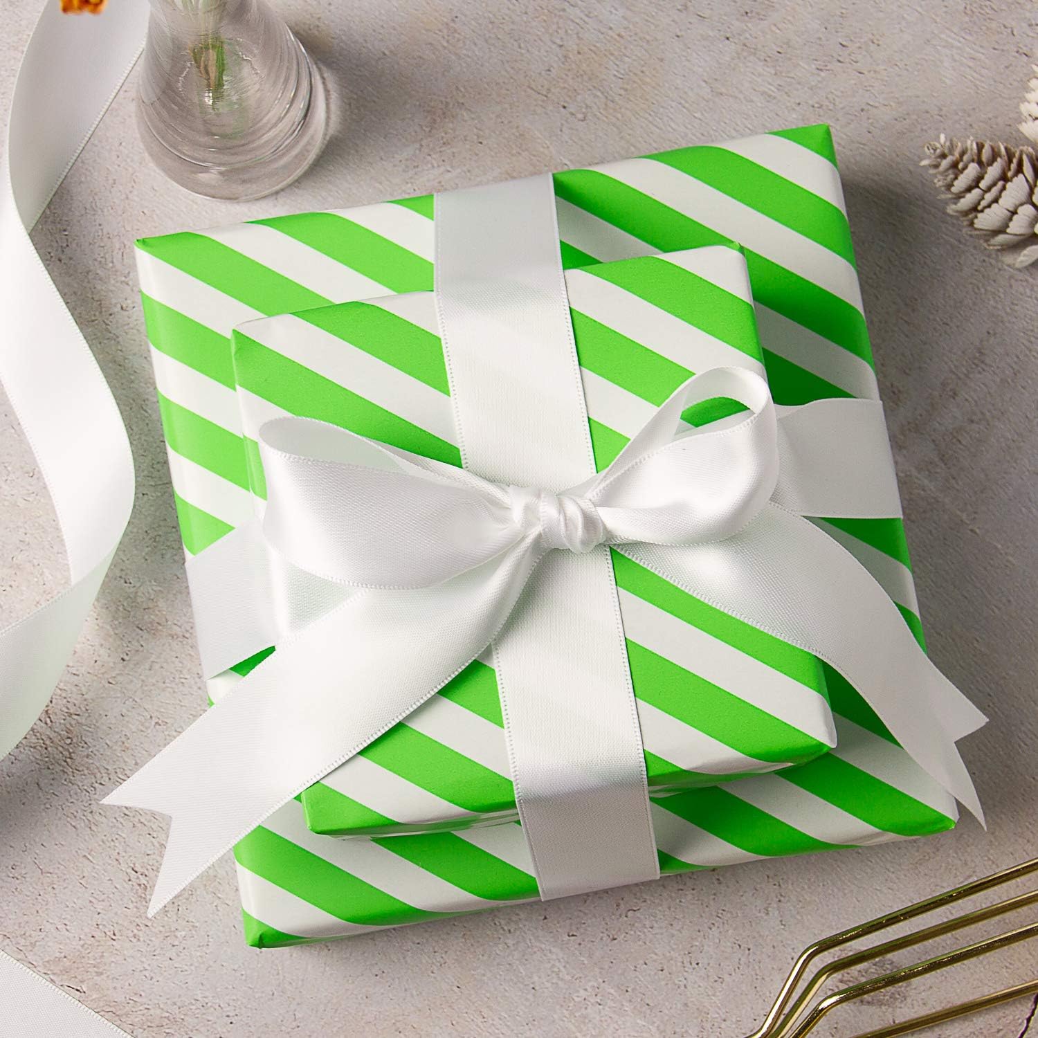 • REVERSIBLE: A solid green side and a green/white stripe side. Two different classic designs make beautiful and varied gift presentations easy.