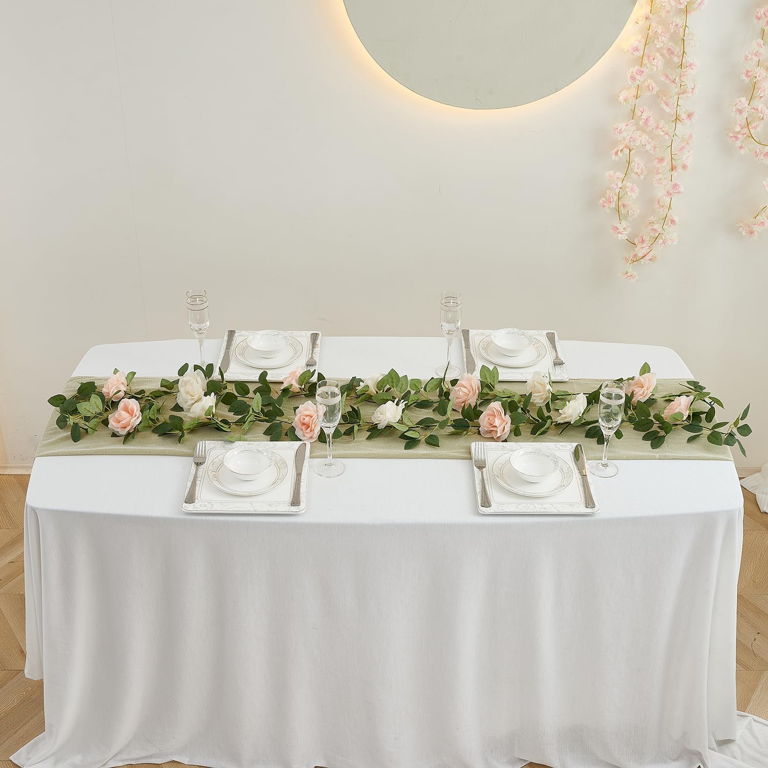 Artificial Rose Garlands Rose Vines Leaves Banners Hanging Floral Garland Fake Rose Flower Vine Wall Decorations