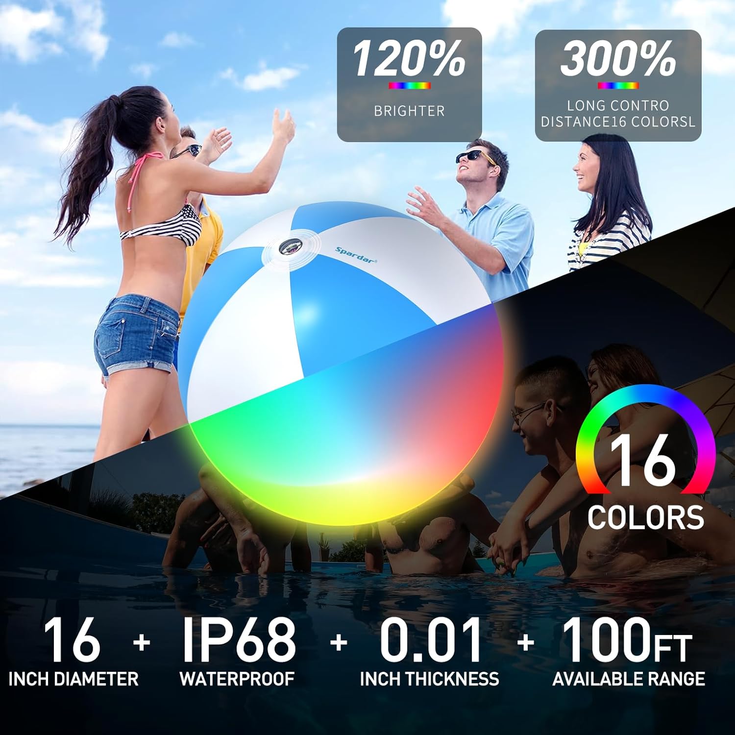 • 【16 RGB Colorful and Changeable】4-pack 16-inch LED light-up beach balls, equipped with a 100-foot control distance sensitive remote control, with 16 light modes and 4 dynamic lighting modes. Different modes can switch different light effects at night, perfect for glow parties, raves, pool parties, beach nights, birthday parties, weddings, gardens, backyards, lawns, paths or sporting events.