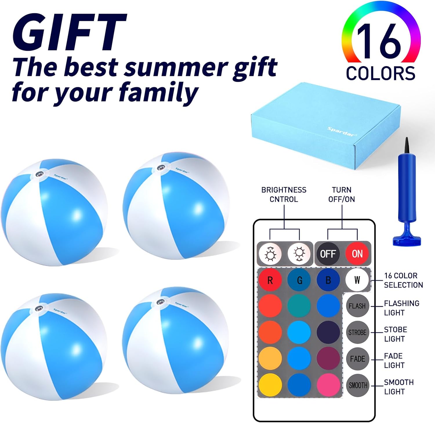 Spardar LED Beach Balls, 4 Pack 16 Inch Light up Beach Balls with Remote Control, Balloon Pump, 16 Colors Lights and 4 Light Modes Pool Toy for Pool Garden Decorations(4 Blue)