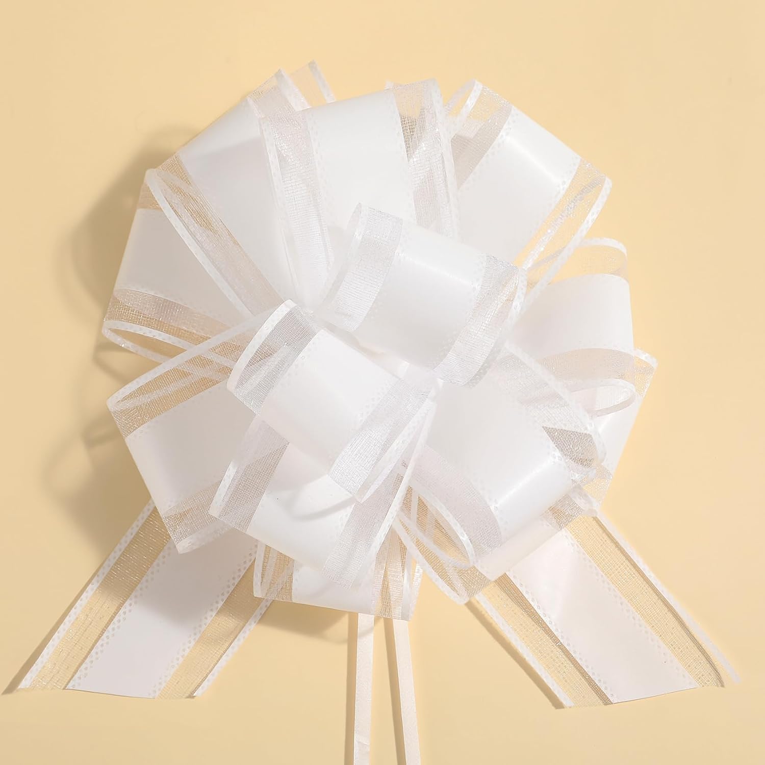 6 Pieces Large Pull Bows,6 inches,Bow for Gift Wrapping,Pull Bows for Christmas Party Birthday Gift Wedding Baskets,Valentine's Day Gift Decorations, Flower Decorations (White), BE-03
