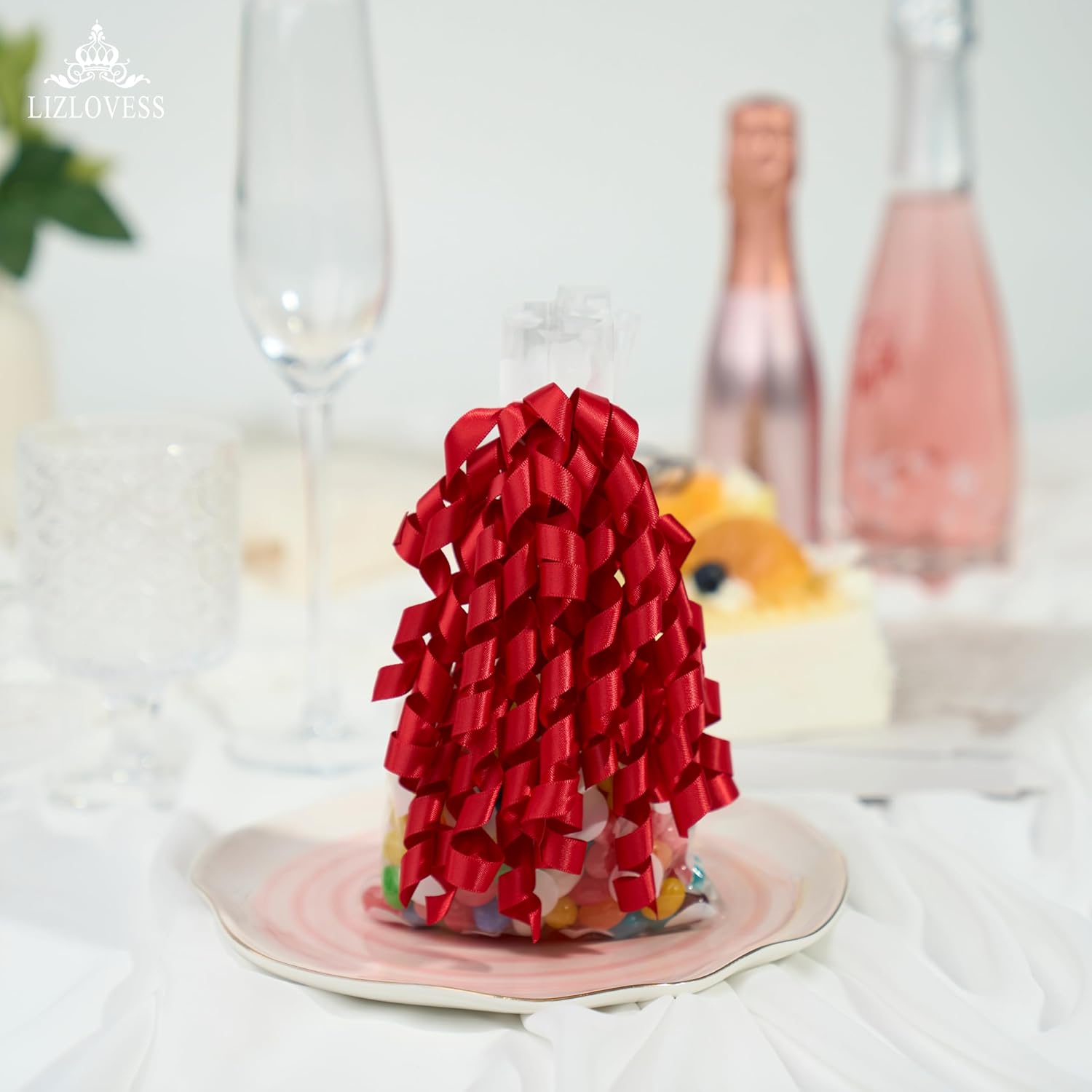 6 Inch Red Curly Bows for Gift Wrapping Set of 6, Self Adhesive Bows Red Gift Bows for Presents, Satin Ribbon Bows for Birthday, Wedding, Christmas, Bridal Shower, Gift Wrap Accessory