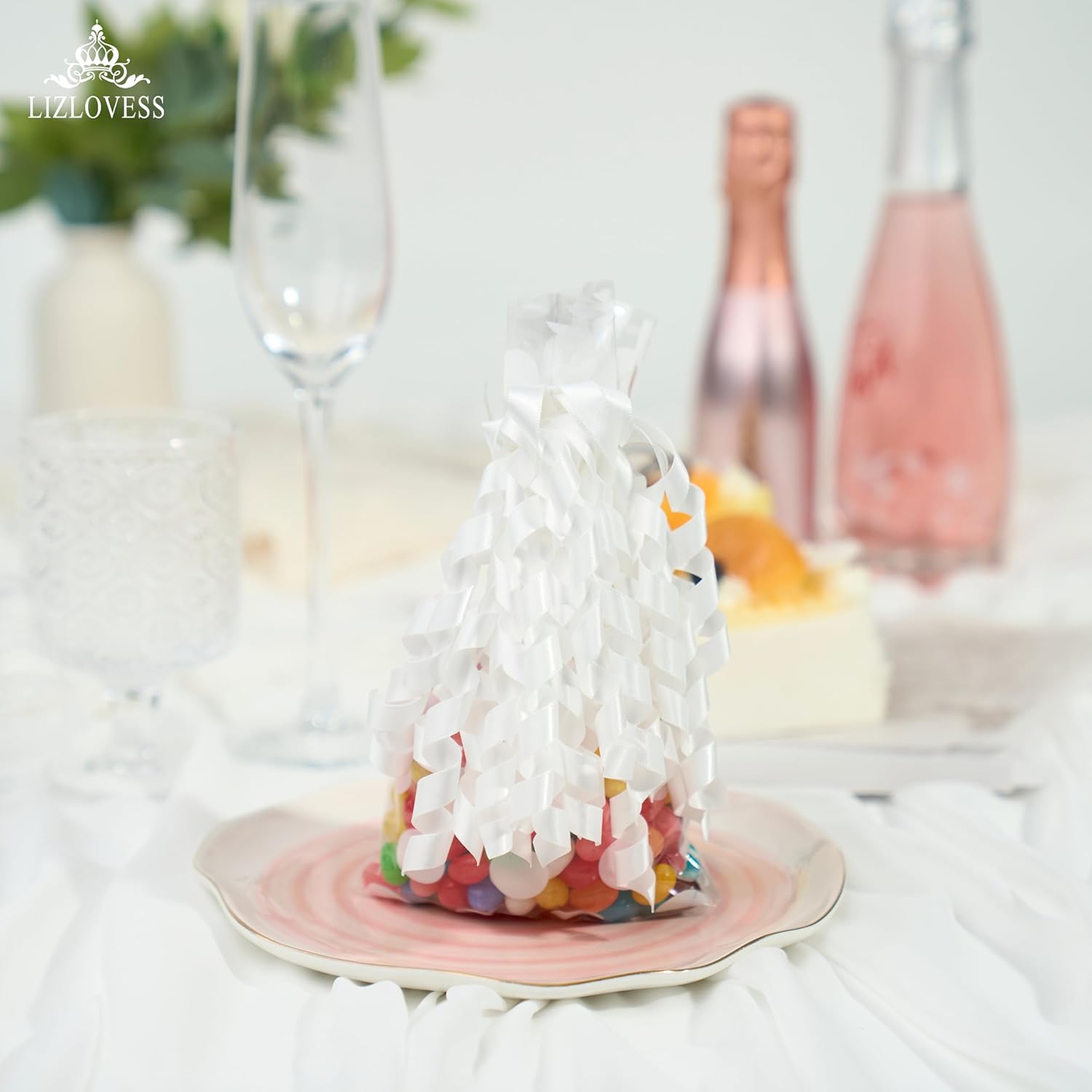 • πŸŽ‰Bow Size: approximately 6 inches, with 5" clear twist ties on the back and a square self adhesive sticker