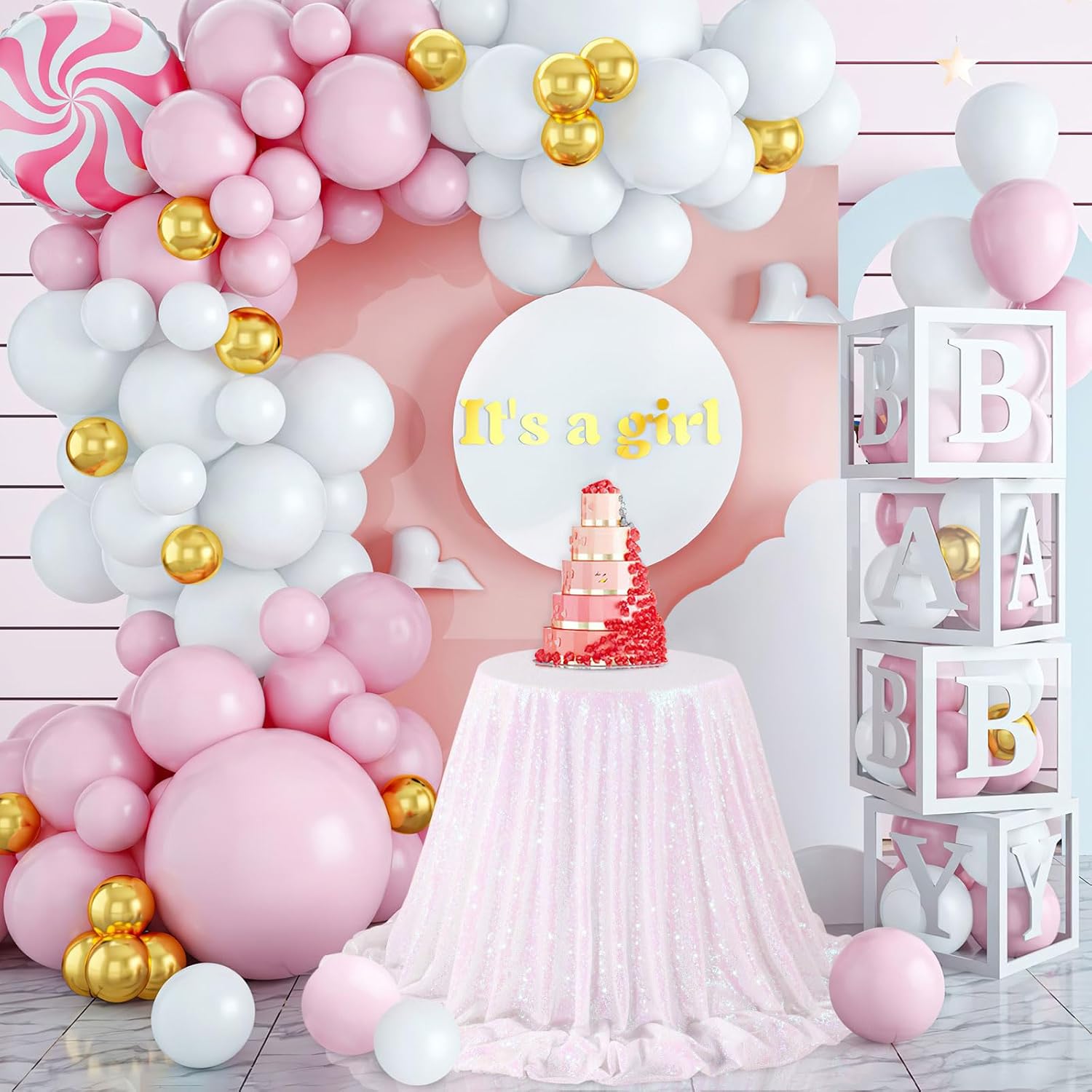 QueenDream Sparkly Sequin Tablecloth - White Iridescent Table Cloth 50x80 Inches Rectangle Table Overlay Fabric for Birthday Parties Baby Shower Decoration