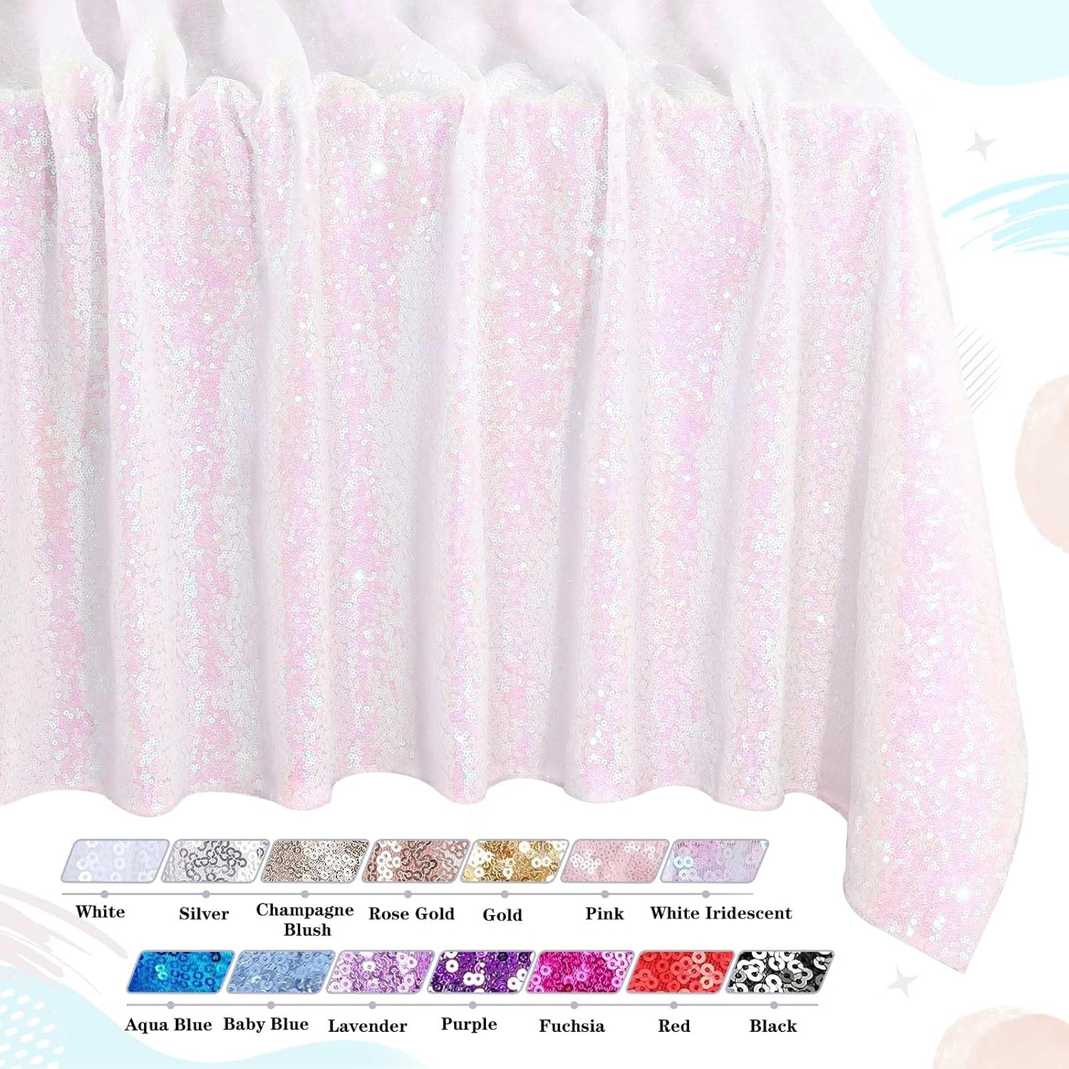 • Mermaid Sequin Tablecloth 50x80 Inch Iridescent White Glitter Tablecloth for Wedding Party Birthday Bridal Baby Shower Decor