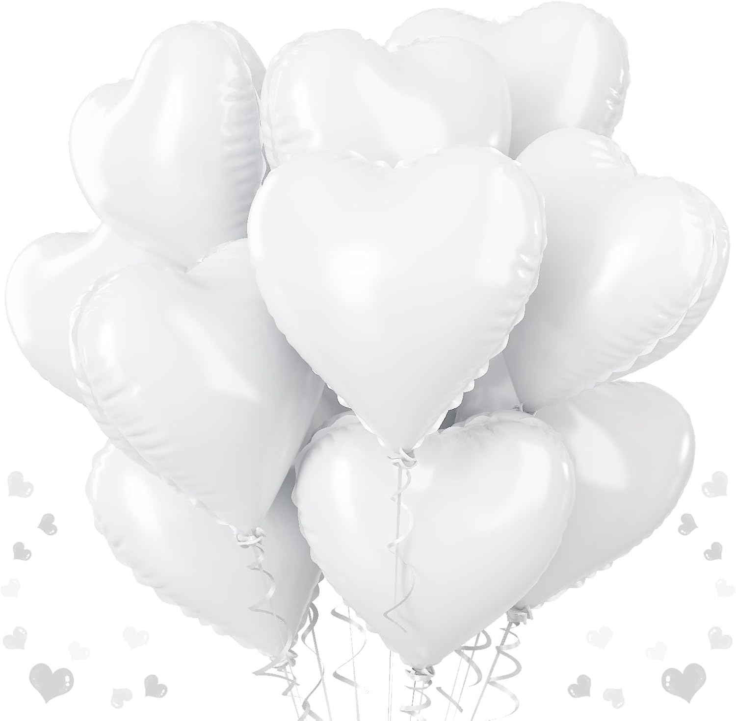 White Heart Foil Balloons, 18 Inch, 12Pcs Large Helium Balloons for Wedding, Birthday, Baby Shower, Bridal, Valentine, Graduation Party Decorations