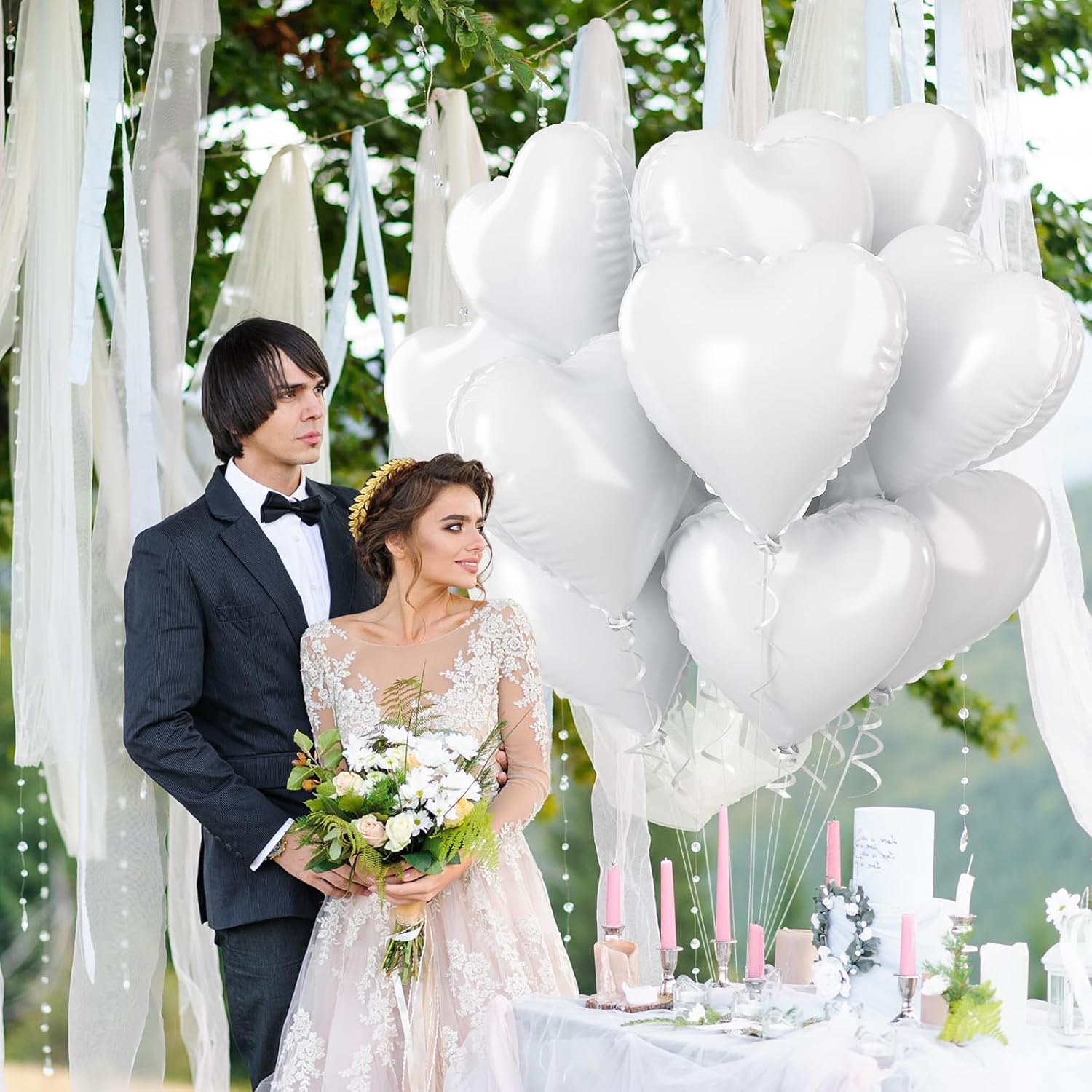 • White Heart Balloons: There are 12pcs 18 inch white heart foil balloons and 1pc ribbons.