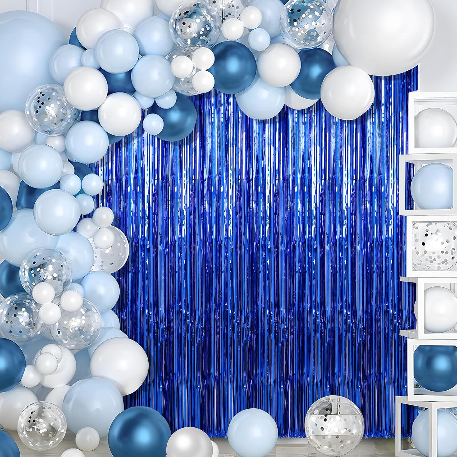 4 Pack Dark Blue Foil Fringe Curtains Door Streamers Party Decorations 3.3 x 8.2 ft, Tinsel Curtain Fringe Backdrop for Parties, Door Fringe Birthday Streamers, Photo Booth Backdrops, Party Decor