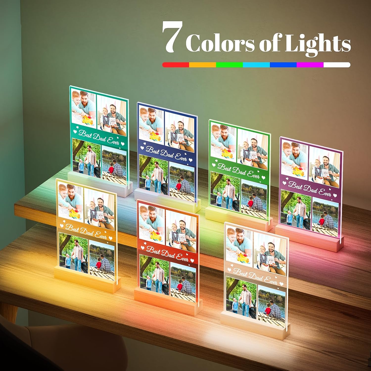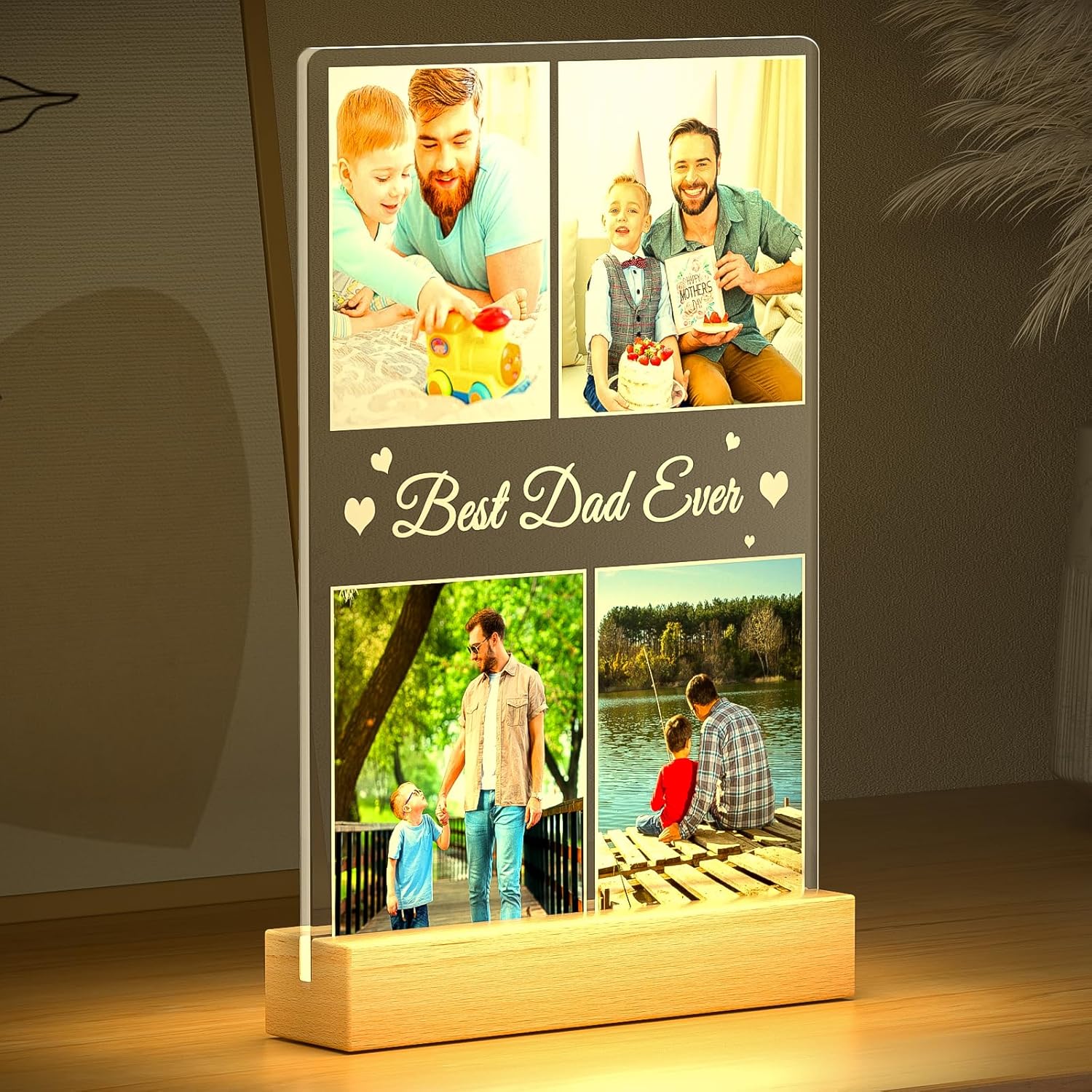 Best Dad Ever Gifts, Custom Collage Picture Frames with Night Light, Customized Acrylic Plaque Photo Frame, Personalized Birthday Photo Gifts for Dad, Baby, Kids, Family