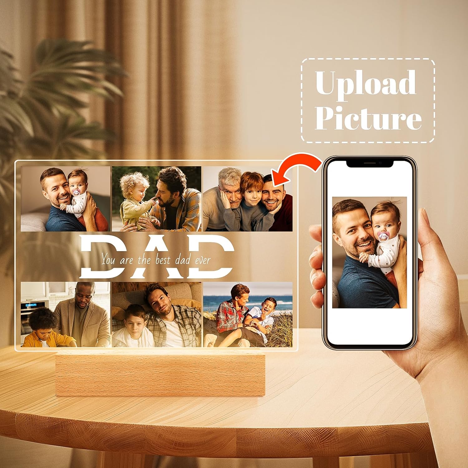 Personalized Gifts for Dad from Daughter Son, Custom Picture Frames with Photos, Customized Photo Frame with Night Light, Personalized Dad Gifts for Birthday Fathers Day Christmas