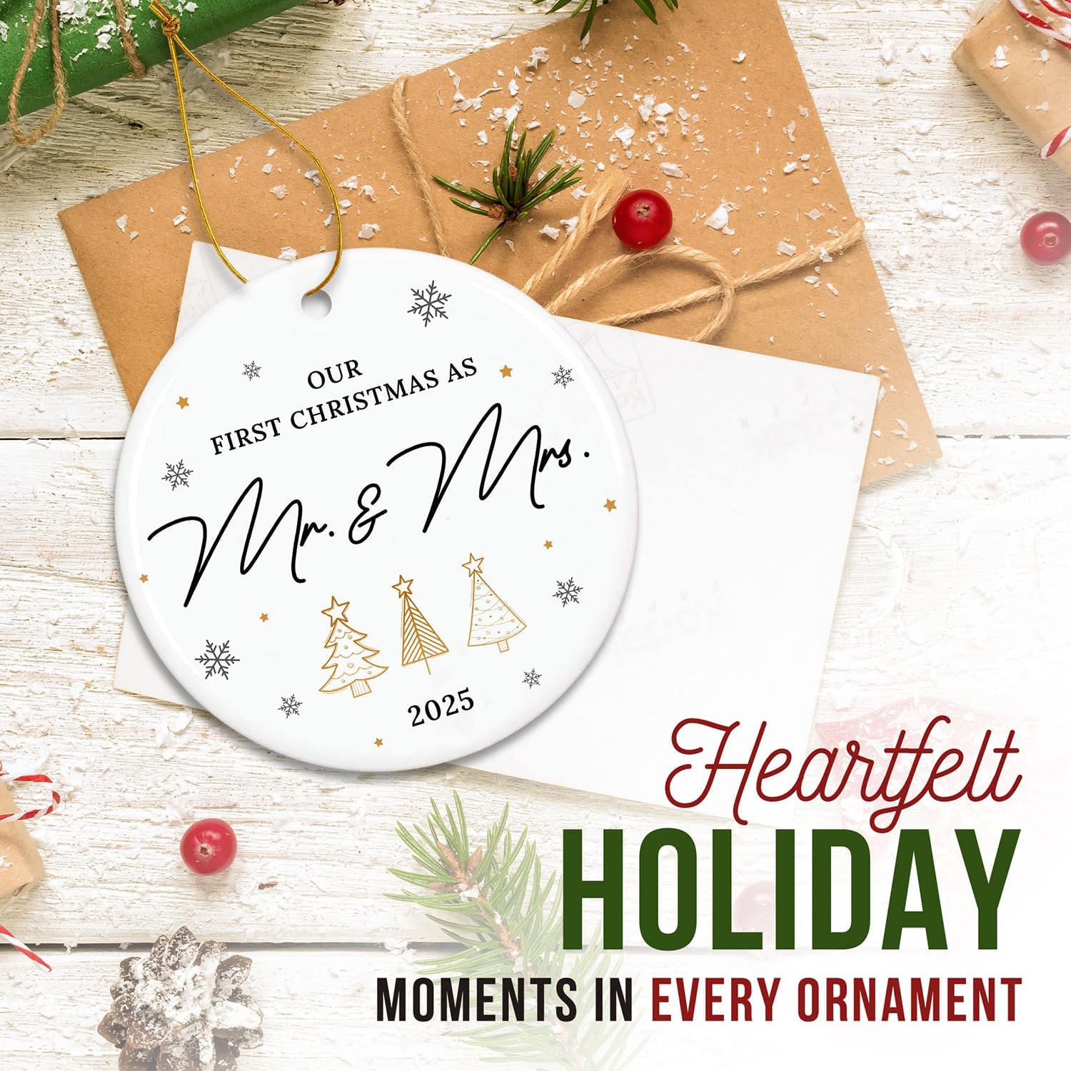 • FIRST CHRISTMAS MARRIED ORNAMENT 2025: Gift them holiday magic for their first married Christmas, adorning their tree and creating year-round joy. Suitable for wedding ornament, wedding keepsake ornament, Mr and Mrs ornament, couple ornaments, first married ornament 2025, just married ornaments, 1st year married ornament