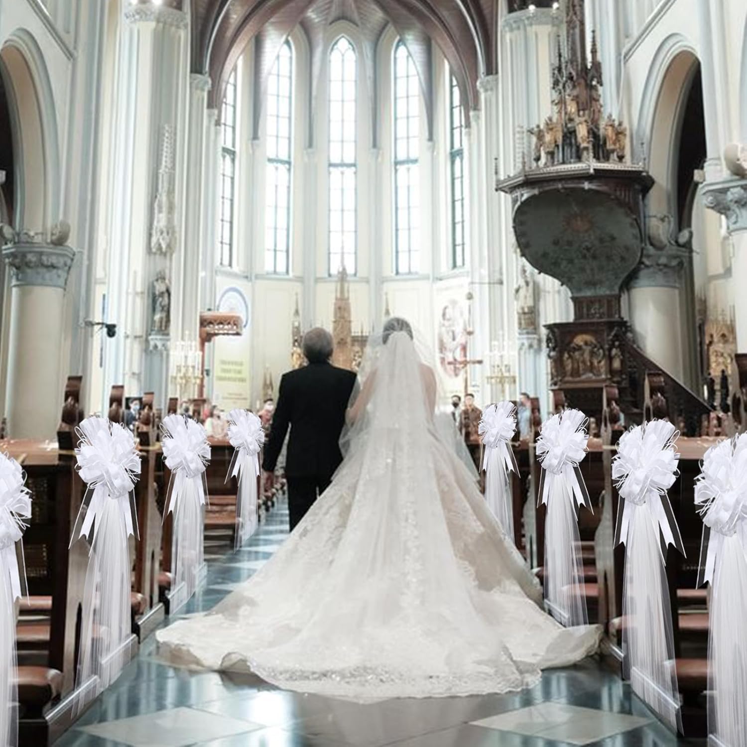 • Wedding Pew Bows Tulle Set: there are 30 white tulle straps, and 30 tulle bow ties, allowing you to make 30 sets of large white wedding pull bows with long tulle tails, which is ideal for enhancing the visual appeal of your wedding aisles, gift items or wedding decorations; This tremendous pack manifests an exquisite blend of style and quantity to make your wedding a memorable affair