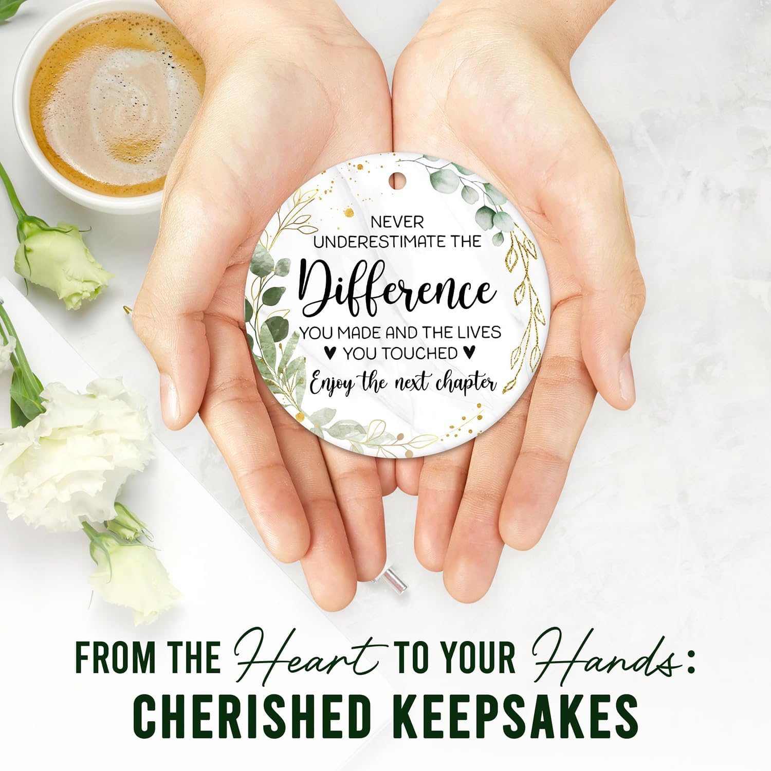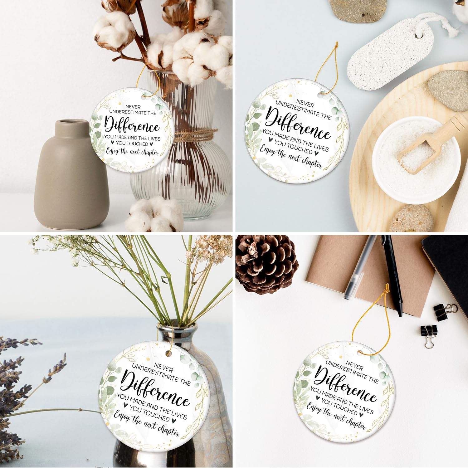• CRAFTED FROM PREMIUM CERAMIC: Embrace the enduring charm of high-quality white ceramic, renowned for its durability. Both the front and back feature identical, vibrant patterns that won't blur or fade. Waterproof and wear-resistant, this ornament promises to maintain its pristine look for years to come