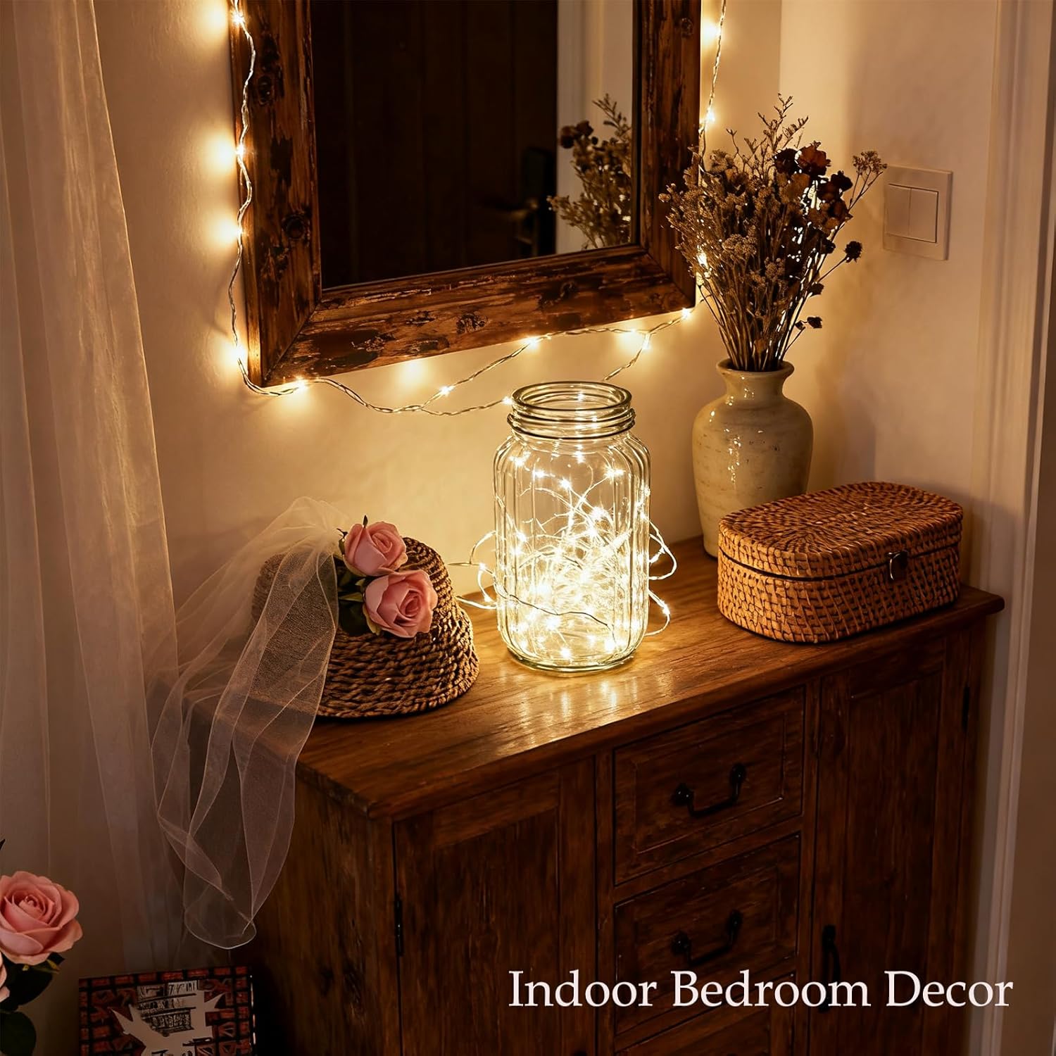 33ft 100 LED Plug in Connectable Fairy String Lights, 8 Mode Decorative Lights for Home, Bed Room, Classroom Wall Ceiling Tree Hanging Indoor Outdoor Easter Christmas Decor, Warm White