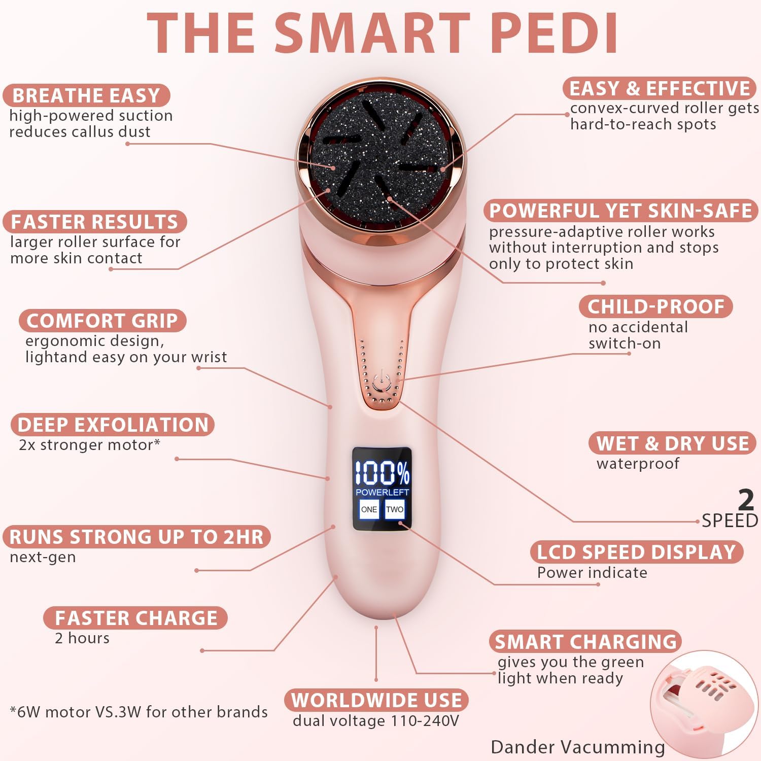 • Electric callus Remover for feet, Powerful & Faster ----- Electric Foot Callus Remover with 2x Strong Motor to buff away hard, dead skin in High Speed, Reveal baby-soft skin in minutes with no prep time. upgrade 2200RPM and 2 Speed- Fast grinding without damage to the healthy skin, best callus remover for feet, Ideal pedicure spa kit gift for men and women