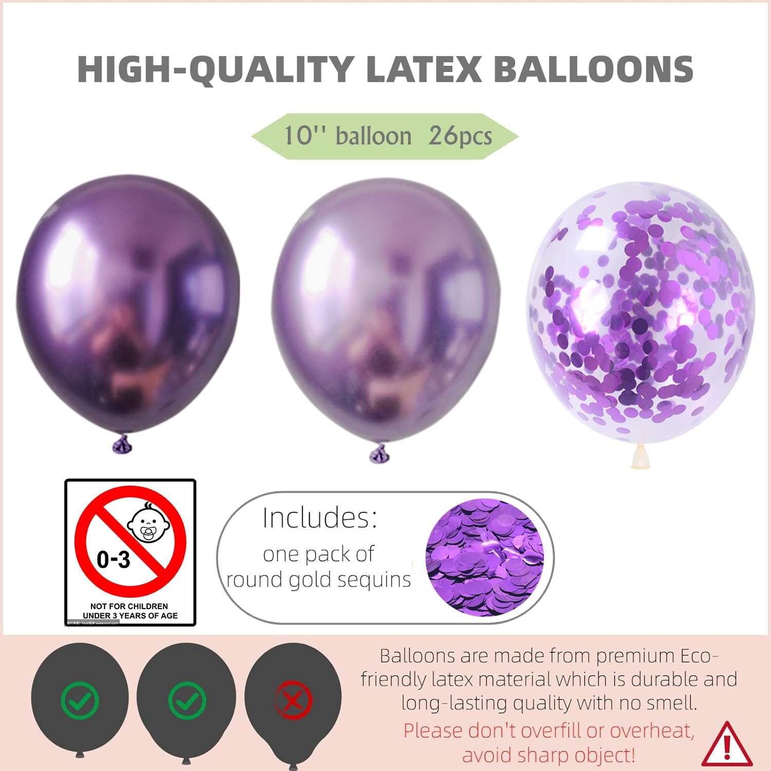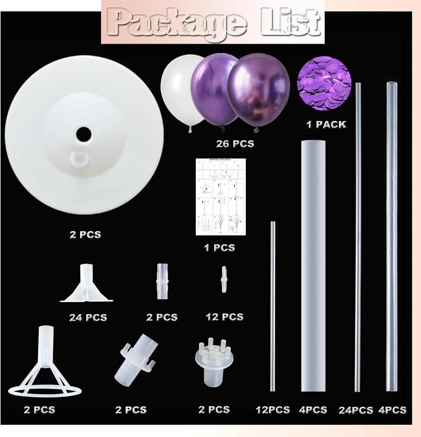 Balloon Column Kit Set of 2 With Confetti Balloons Included - Metallic Purple Balloon Tower with Stand, Base, and Pole,Backdrop Decoration for Wedding, Baby Shower, Birthday Party, Bachelorette Party