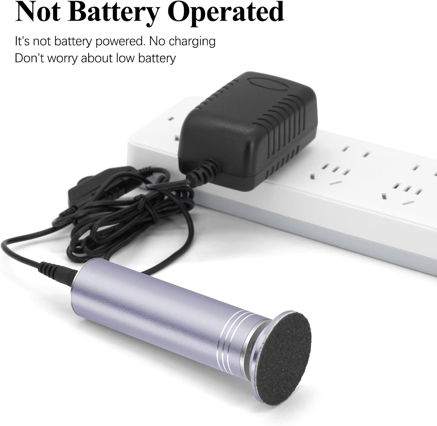• Not battery operated, no need to worry about low battery. The electric foot sander is powerful enough and torquey, suitable for removing daily dead and dry skin from your feet.