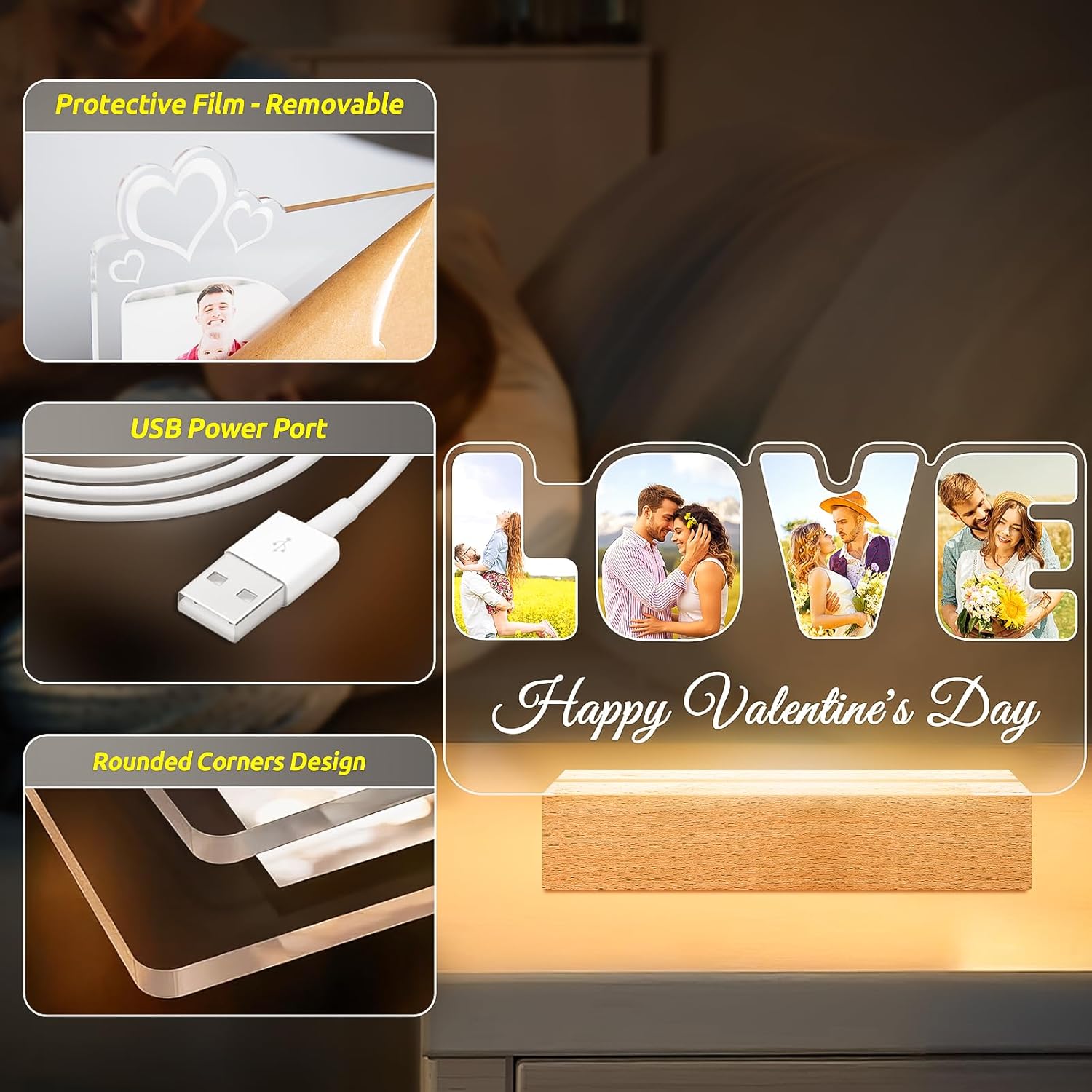 Custom Picture Frames with Photo, Personalized LOVE Photo Frame with Night Light, Customized Couples Gifts, Personalized Anniversary Valentines Gifts for Women Men Her Him Girlfriend Boyfriend