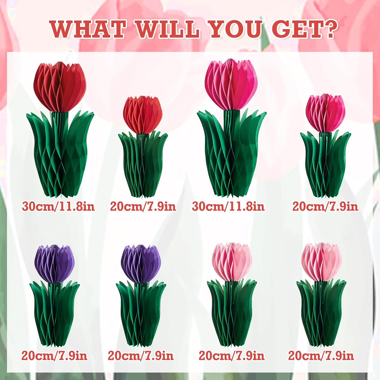 • Elegant Decor: Elevate your party decor with these 8 PCS flower honeycomb decorations, including charming tulip designs that add a touch of sophistication.