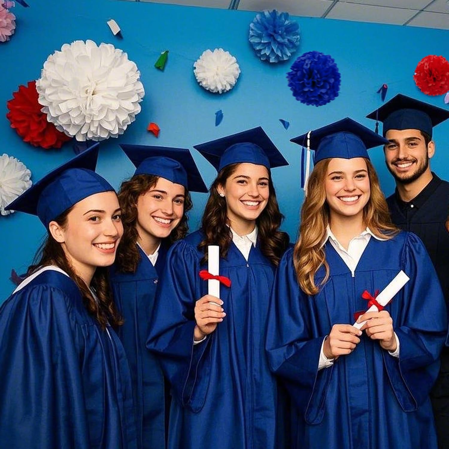 Capesaro Red White and Blue Tissue Paper Pom Poms, 15PCS Tissue Paper Flowers for or 4th of July Patriotic Graduation Birthday Wedding Nautical Baseball Theme Party Decoration