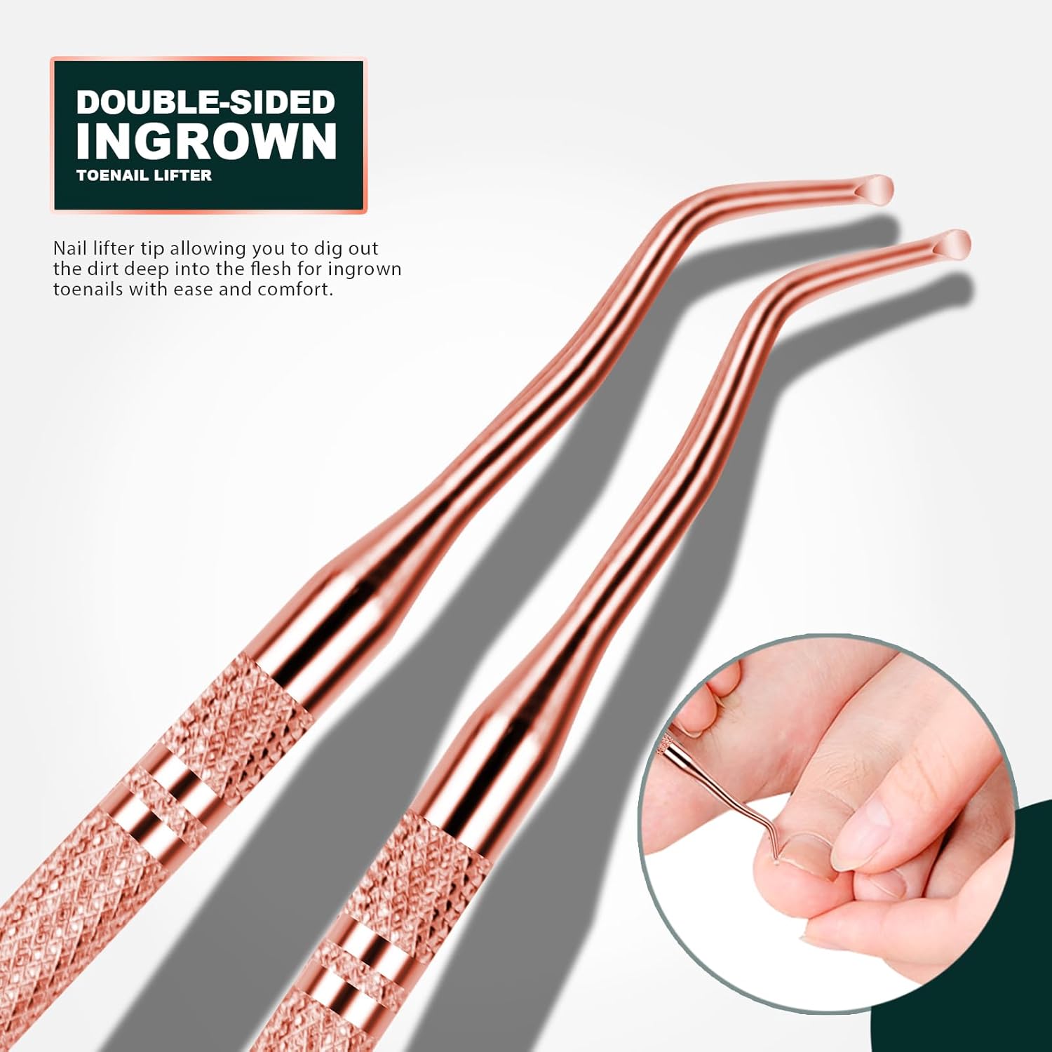 • Pain Relief Ingrown Toenail Tool: The ergonomically designed ingrown toenail file and toenail lifter meets all your needs of toenails in different shapes or thicknesses. The smooth surface has no rough edges allowing you to clean ingrown toenails with ease, and creates the right amount of pressure when press against the painful area