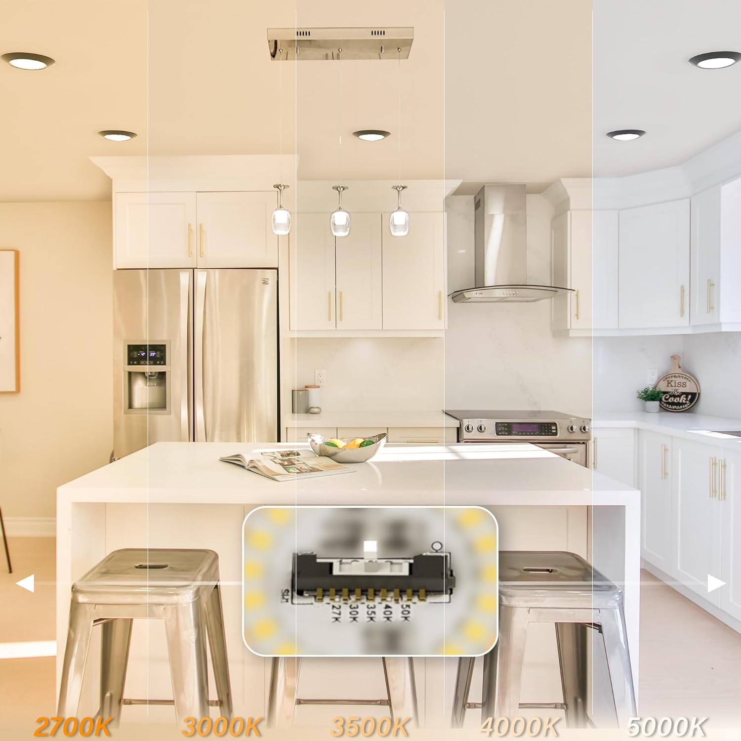• SMOOTH DIMMING & 5CCT SELECTABLE: Compatible with most of the TRIAC/ELV dimmers, smoothly dimming capabilities (10%-100%) that fit your any need. (PLEASE refer to the dimmer list for selecting a right one for best dimming performance).Don't forget to select the right color temperature at the back of the unit from 2700K-3000K-3500K-4000K-5000K before installation.