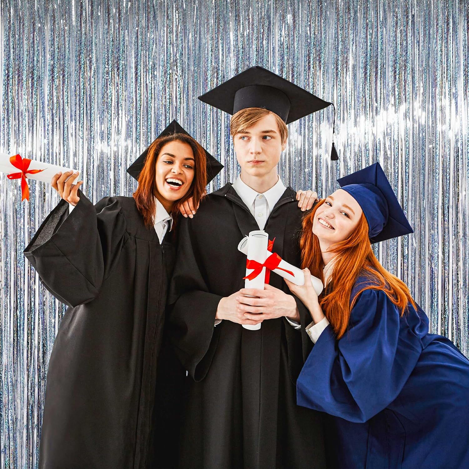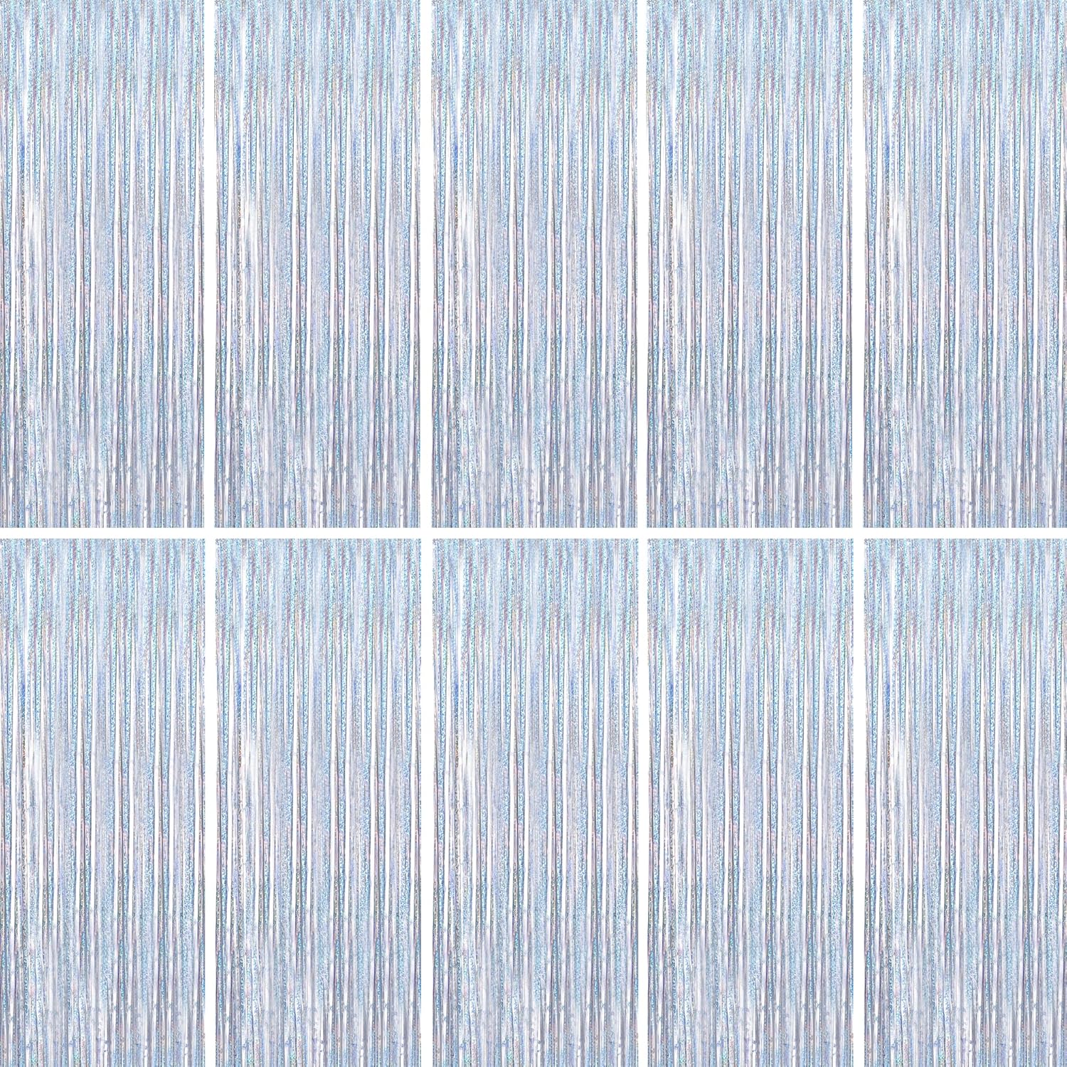 BTSD-home 10 Pack Laser Silver Foil Fringe Curtain Metallic Streamer Party Decorations Photo Booth Backdrop Door Curtains for Wedding Birthday Baby Shower Bachelorette Halloween